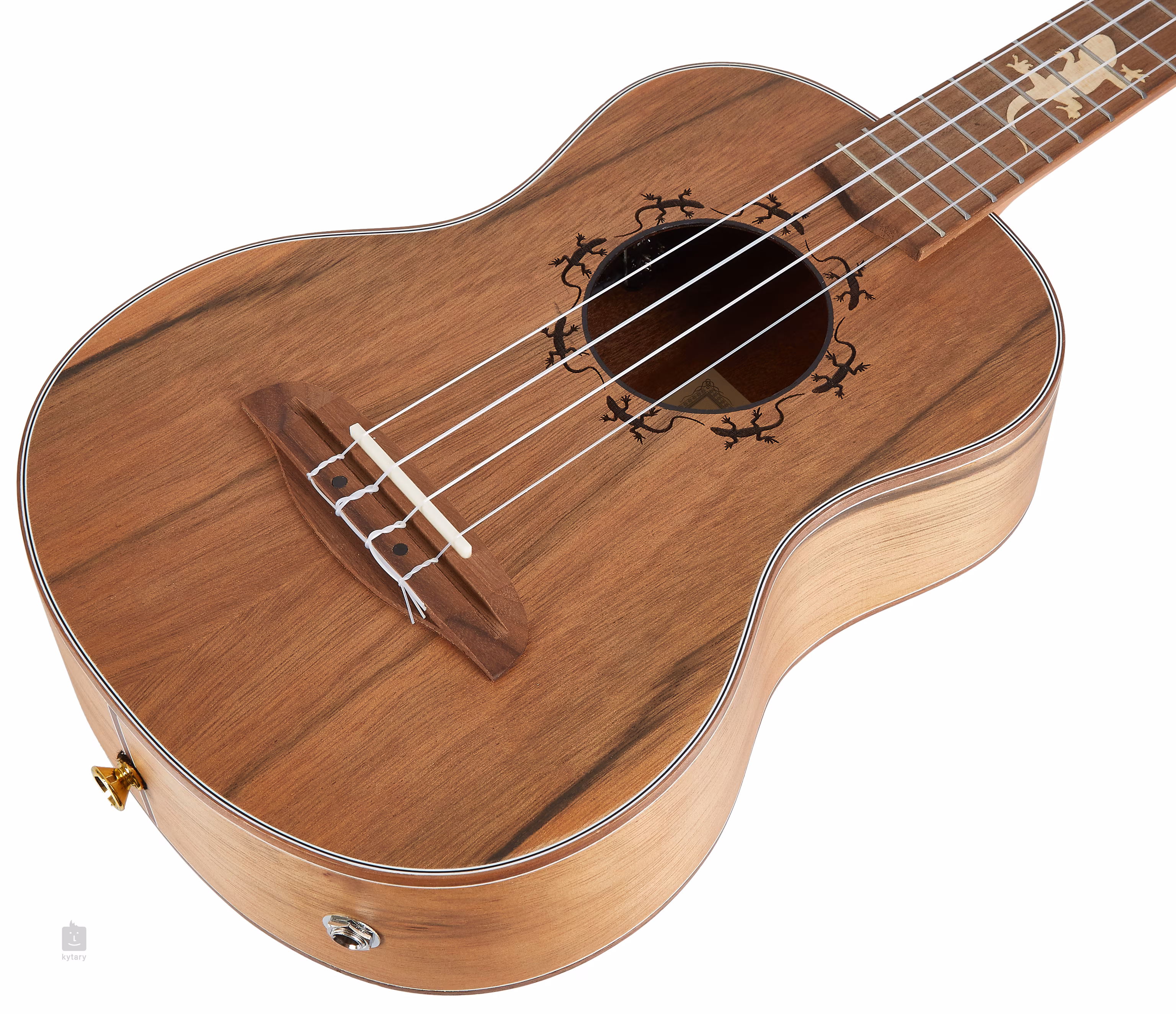 Ukulele elektroakustyczne Lizard z tytułowej serii Ortega oferuje wysoką jakość wykonania, fajny wygląd egzotycznego drewna i stylowy design w postaci laserowych grawerów z motywami jaszczurek (podstrunnica, rozeta). Instrumenty dostarczane są w praktycznym pokrowcu.