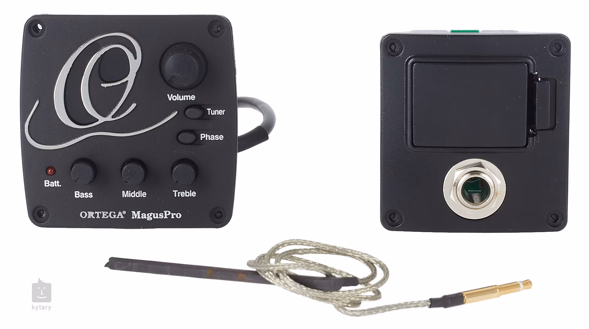 Aktywna elektronika Ortega MagusPro/G to idealny sposób na nagłośnienie gitary akustycznej/klasycznej lub basu akustycznego. W zestawie znajduje się przedwzmacniacz przeznaczony do montażu z tyłu instrumentu z trzypasmowym korektorem (Bass, Middle, Treble), regulacją głośności, przełącznikiem fazy, zintegrowanym tunerem i dwukolorowym wyświetlaczem, gniazdem wyjściowym z nasadką/wejściem baterii (9V), przetwornikiem piezoelektrycznym i opaską kablową.