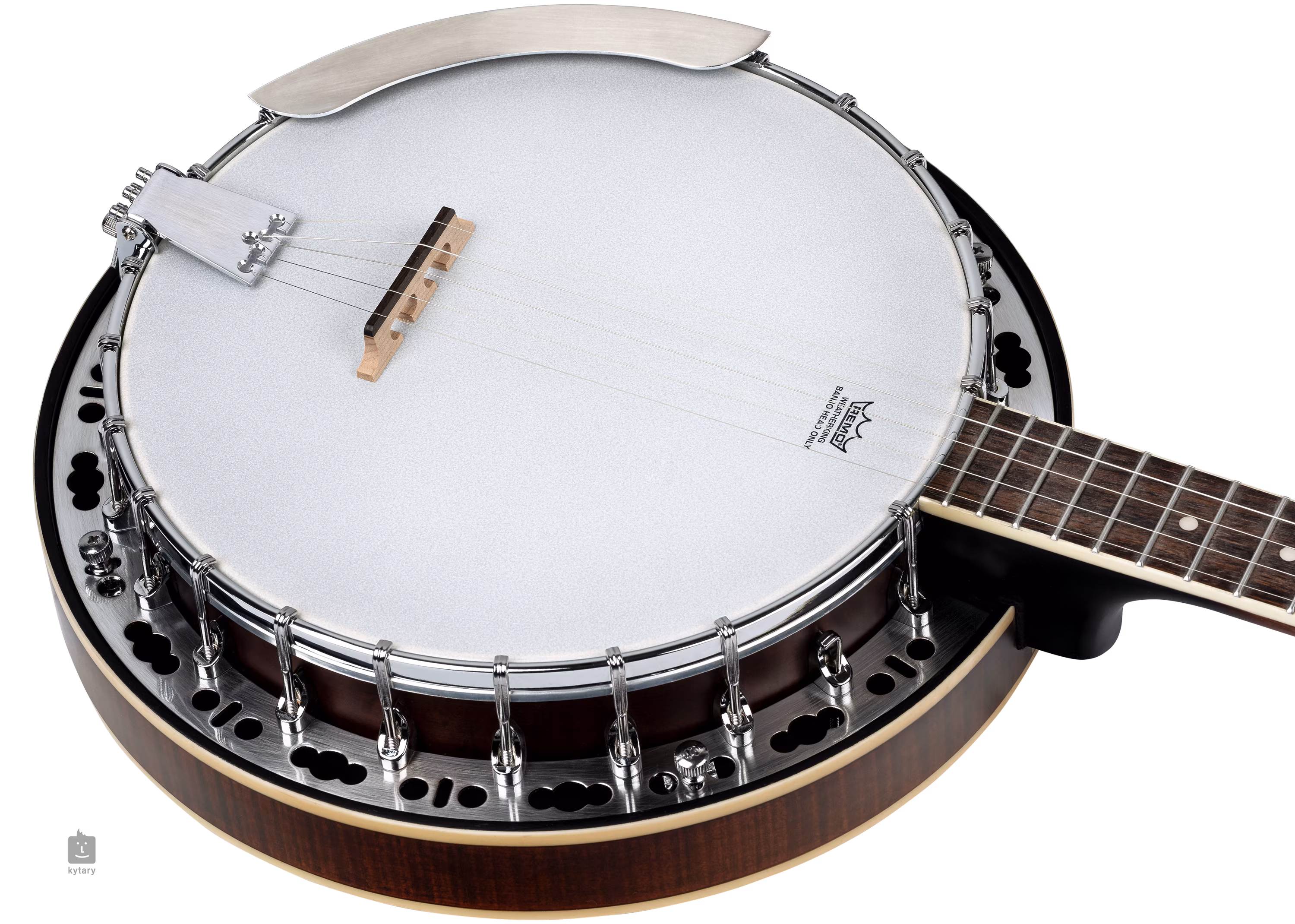Pięciostrunowe banjo Ortega OBJ300-WB z serii Americana łączy w sobie tradycyjny wygląd i charakter z elementami współczesnymi. Jest to banjo z rezonatorem z klonu figuralnego, czyli z zamkniętą tylną płytą. Mahoniowa szyjka, rezonator i korpus instrumentu ozdobione są wykończeniem Satin Whiskey Burst, podstrunnica jest palisandrowa. Membrana Remo jest przymocowana do korpusu za pomocą systemu napinającego. Struny osadzone są w mechanizmach strojących Gold Tone i nad hebanową podstrunnicą z klonową podstawą w podstrunnicy. Ładne wykonanie podkreślają chromowane okucia i podłokietnik.
