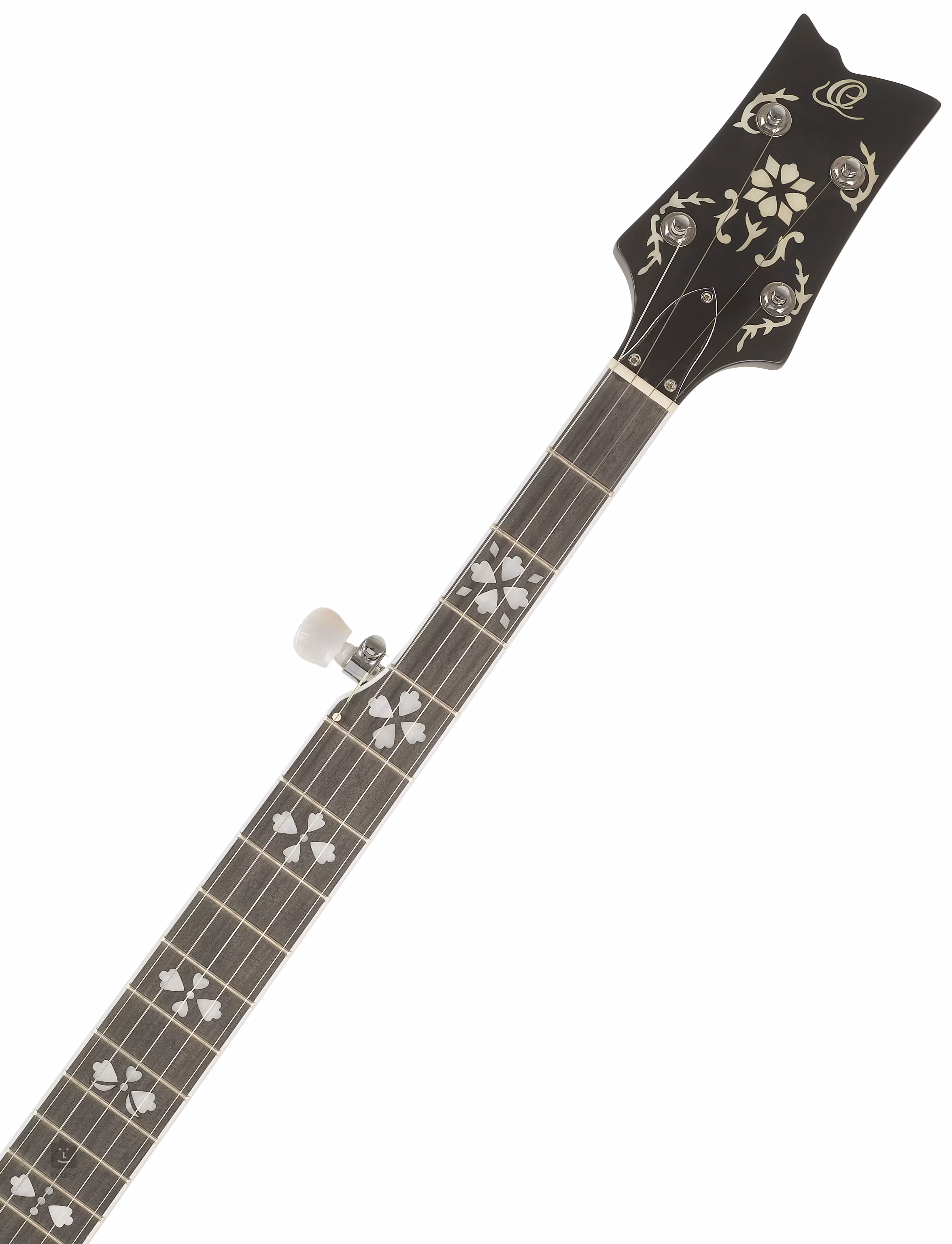 OBJ450-SBK to pięciostrunowe banjo typu closed back, czyli z zamkniętą płytą tylną - mahoniowym rezonatorem, dzięki czemu jest w stanie wydobyć odpowiednio potężne brzmienie. Jest to najbardziej przystępny cenowo model banjo z serii Ortega, który posiada pierścień tonowy (wykonany z walcowanego mosiądzu). Instrument posiada również mahoniową szyjkę, palisandrową podstrunnicę z ozdobnymi inkrustacjami, mahoniowy korpus ze sklejki oraz czarną membranę Remo przymocowaną do obręczy. Miłośników tradycji ucieszy fakt, że struny zamontowane są w chromowanych automatach stroikowych Geared, które wyglądają jak klasyczne automaty typu Friction, ale zapewniają bardziej stabilne i dokładne strojenie.