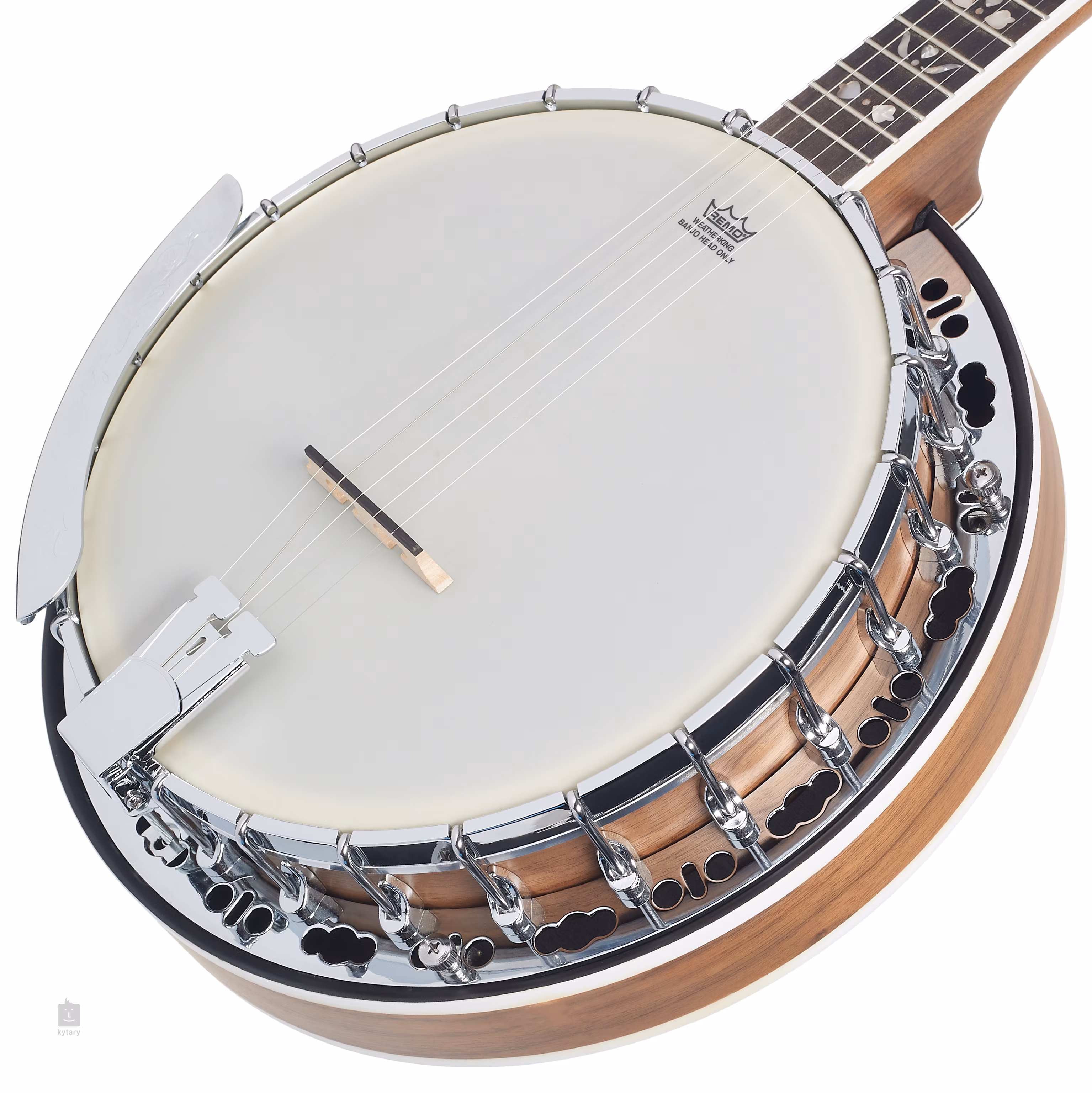 OBJ550W-SNT to pięciostrunowe banjo typu closed back, czyli z zamkniętą płytą tylną w postaci rezonatora wykonanego z drewna orzecha burlowego o chłodnym wzorze. Posiada pierścień rezonansowy wykonany z walcowanego mosiądzu, orzechową szyjkę, palisandrową podstrunnicę z ozdobnymi inkrustacjami, chromowaną podpórkę pod ramię ozdobioną grawerunkiem z motywem firmowym, płaski kołnierz, korpus wykonany ze sklejki oraz obręcz Remo z przymocowanym do niej błotnikiem. Miłośnicy tradycji będą zadowoleni z chromowanego mechanizmu strojenia Geared, który wygląda jak klasyczny mechanizm Friction, ale zapewnia bardziej stabilne i dokładne strojenie.