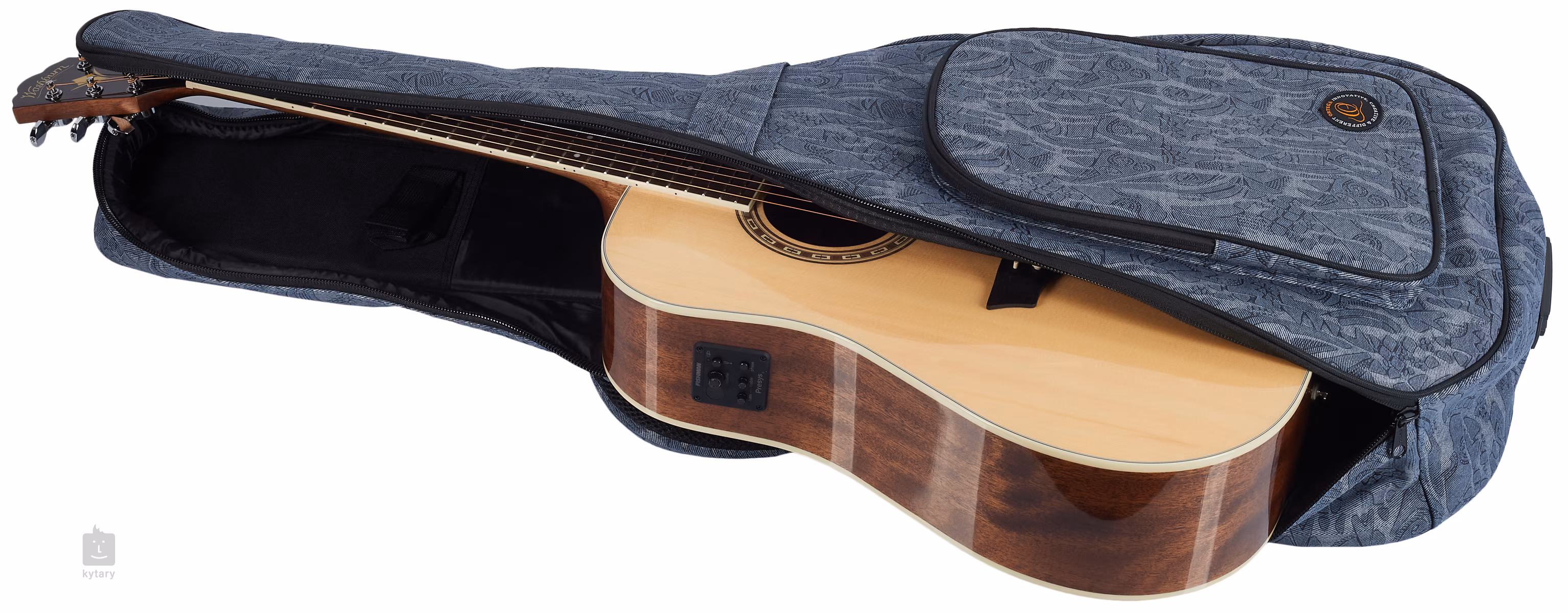 Nowa seria denimowych futerałów od Ortegi już na pierwszy rzut oka zachwyca zastosowanym materiałem - połączenie płótna i bawełny w denimie nie tylko świetnie wygląda, ale jest też wyjątkowo wytrzymałe. Wewnątrz znajduje się 12 milimetrów grubej wyściółki i miękka czarna nylonowa podszewka chroniąca instrument, a także uchwyt na szyję z bezpiecznymi zapięciami na rzepy. Na zewnątrz pokrowca znajduje się duża kieszeń do przechowywania akcesoriów, para wygodnych regulowanych pasków i niezawodny system zamków błyskawicznych. Jego rozmiar sprawia, że pokrowiec jest idealnym wyborem dla gitar akustycznych typu Dreadnought i podobnych.