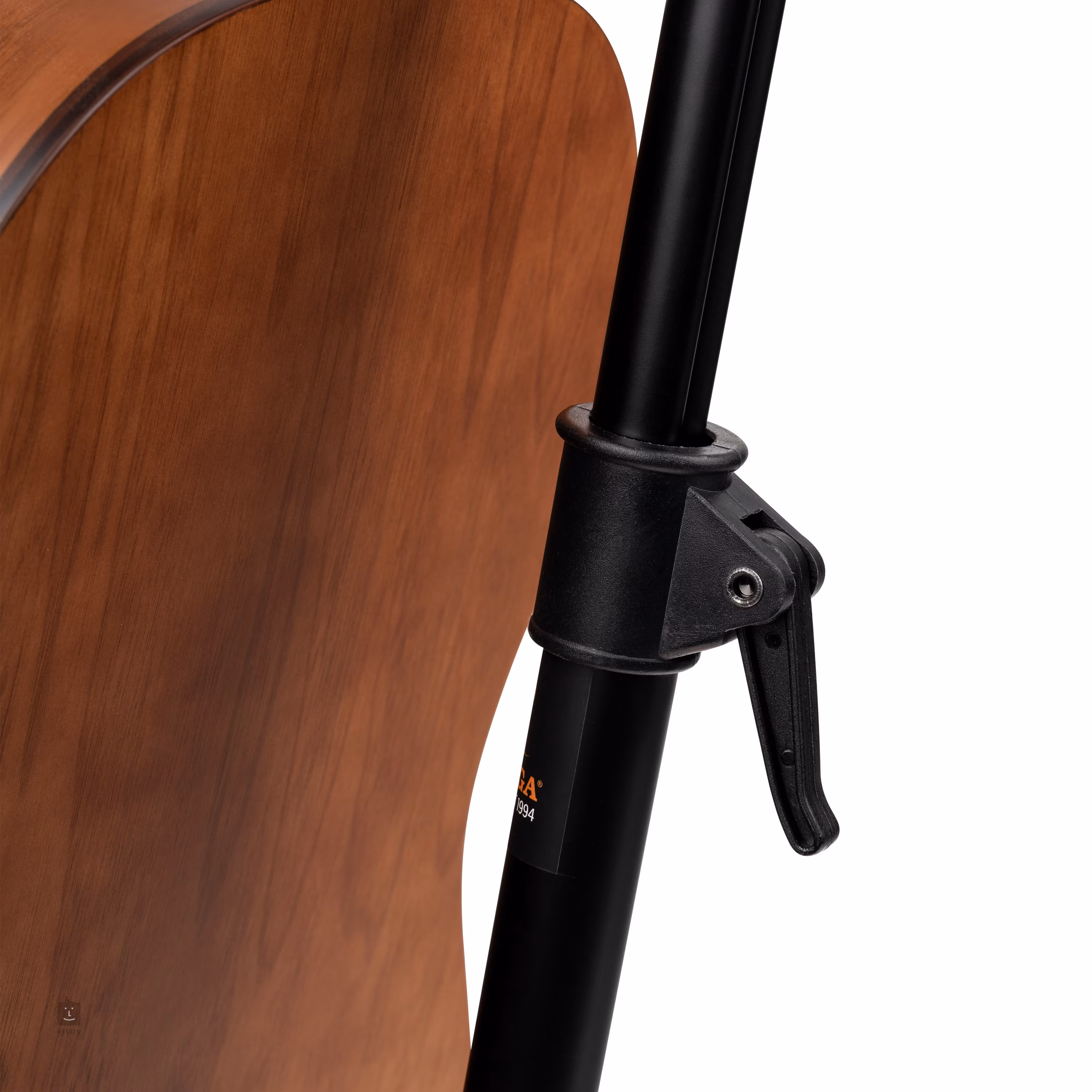 Nowy stojak firmy Ortega, na którym można wygodnie i bezpiecznie zawiesić gitarę akustyczną, elektryczną lub basową. Stojak nadaje się również do instrumentów o nietypowych kształtach korpusu i praktycznie każdym kształcie główki. Dzięki sprytnemu systemowi można bardzo szybko i łatwo regulować wysokość stojaka, a w razie potrzeby stojak można złożyć do kompaktowych rozmiarów. Konstrukcja stojaka wykonana jest z wydrążonych rur stalowych, które zapewniają stabilność i trwałość przy zachowaniu przyjemnie niskiej wagi. Oczywiście w miejscach styku z narzędziem znajduje się dodatkowa miękka wyściółka, która zapobiega zadrapaniom lub innym uszkodzeniom narzędzia.