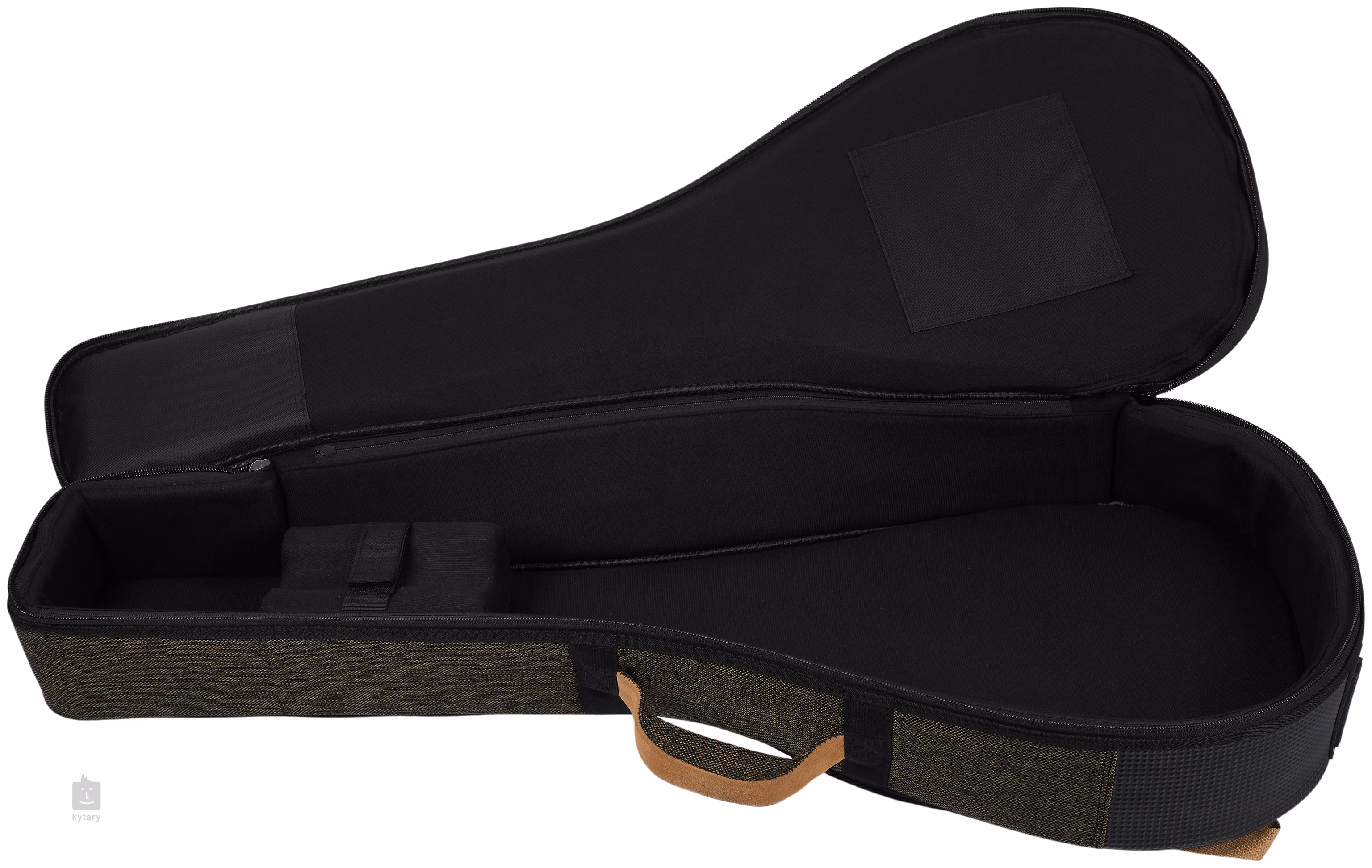 Pokrowiec jest wykonany z połączenia płótna, bawełny i prawdziwego zamszu, co zapewnia mu stylowy wygląd i wyjątkową wytrzymałość. O ochronę instrumentu dba 22-milimetrowa wyściółka i 5-milimetrowa rama z utwardzonego polietylenu, która nadaje pokrowcowi jego wytrzymałość. Wewnątrz futerału banjo spoczywa na miękkiej wyściółce z czarnego aksamitu, a jego szyjka idealnie pasuje do miękkiego uchwytu z zabezpieczającymi rzepami. Na zewnątrz znajdują się dwie duże kieszenie do przechowywania akcesoriów, para wygodnych pasków na plecy o regulowanej długości oraz bardzo wygodny zamszowy uchwyt.