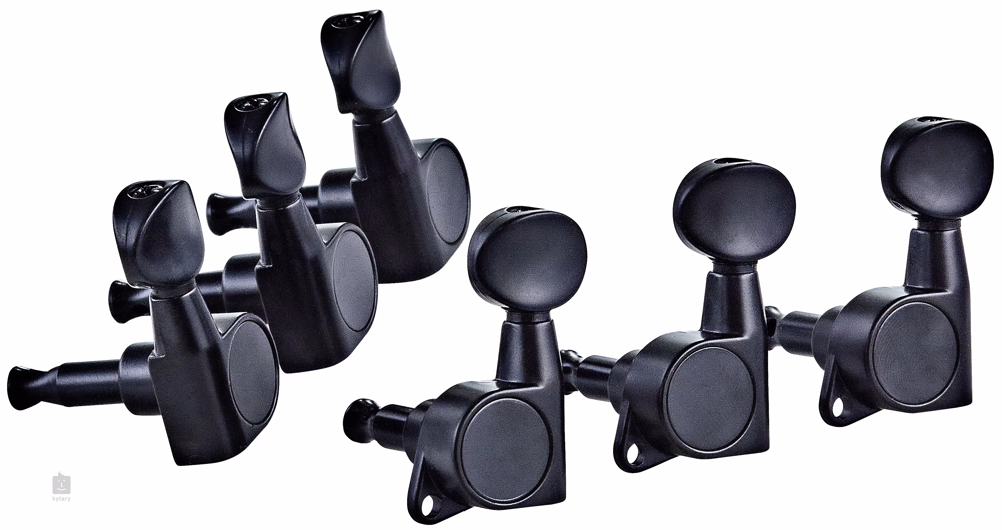 Mechanizmy do strojenia gitary elektrycznej. Wykonane są z metalu w błyszczącym czarnym wykończeniu, kołki wykonane są z wytrzymałego czarnego plastiku. Odpowiedni do instrumentów z układem mechaniki 3+3.