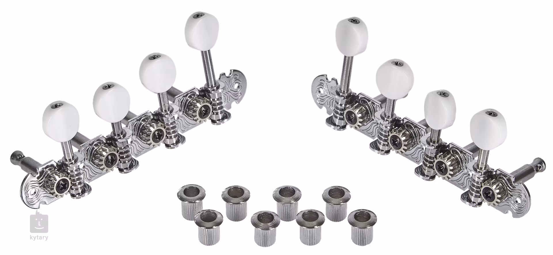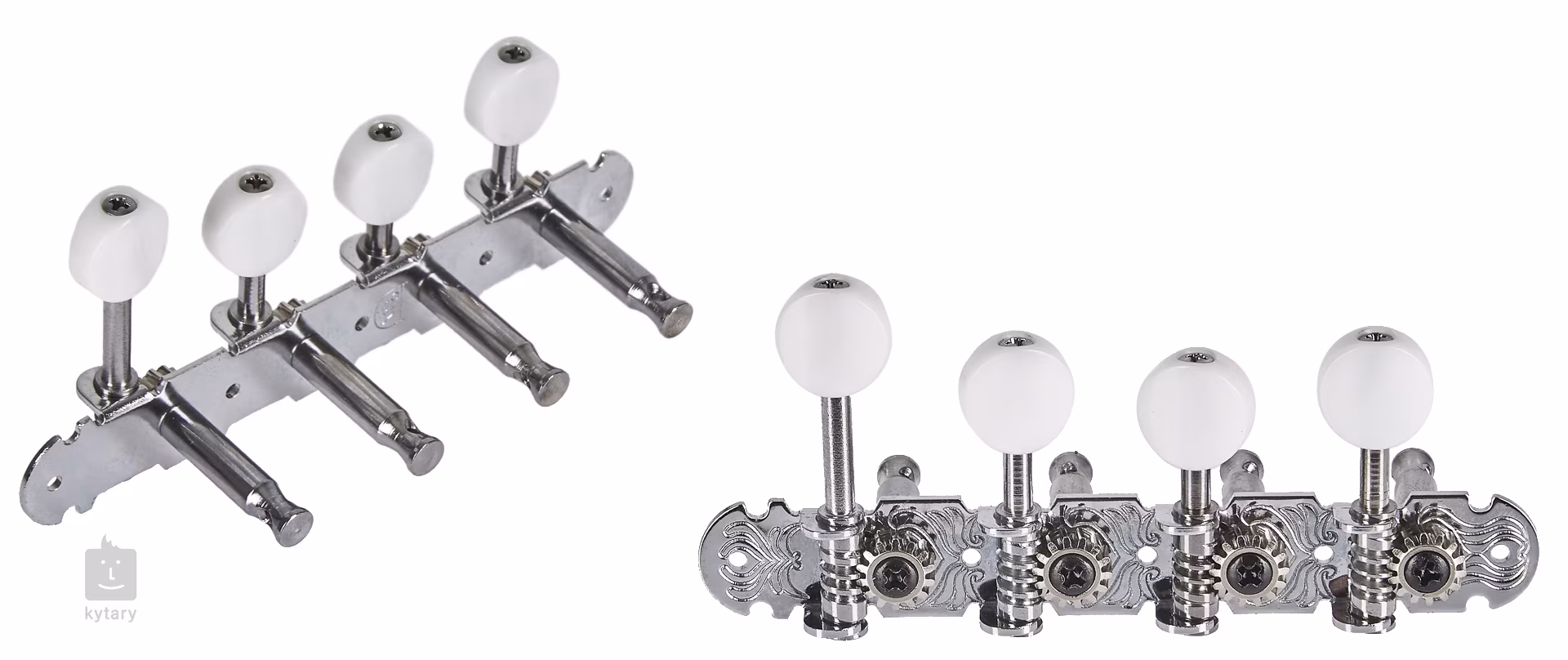 Wysokiej jakości maszynki do strojenia mandoliny typu F. Wykonane są z metalu w chromowanym wykończeniu, kołki wykonane są z wytrzymałego czarnego plastiku.