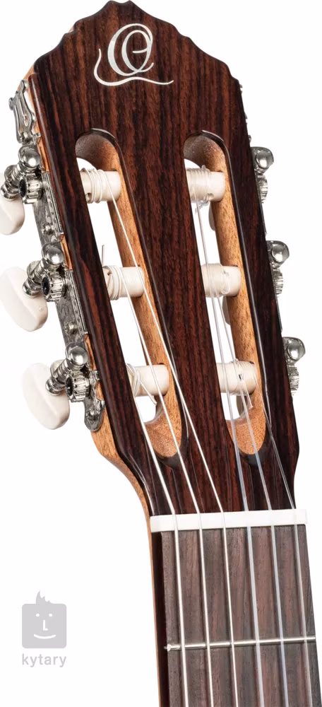 Struny są zamocowane przez zerowy i siodełkowy próg z kości w klasycznych mechanizmach strojących i palisandrowym mostku. Ładne wykończenie podkreśla lakier wypolerowany na wysoki połysk, klonowa obwódka i logo firmy na główce instrumentu.