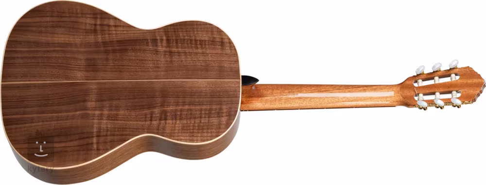 Struny są zamocowane przez zerowy i siodełkowy próg z kości w klasycznych mechanizmach strojących i palisandrowym mostku. Ładne wykończenie podkreśla lakier wypolerowany na wysoki połysk, klonowa obwódka i logo firmy na główce instrumentu.