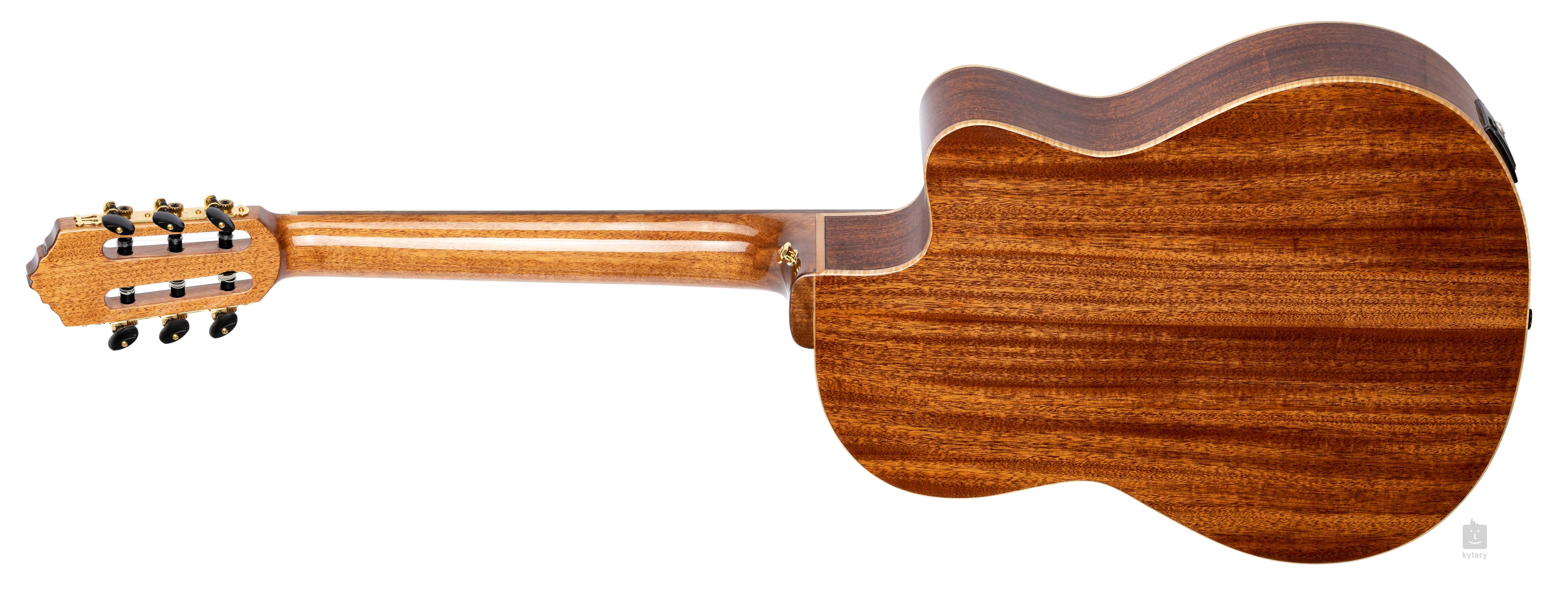 Front tej elektroakustycznej gitary klasycznej wykonany jest z litego świerku Sitka, natomiast tył i boki ze sklejki sapele. Do mahoniowej szyjki przyklejona jest podstrunnica o przekroju promienistym, połączona z korpusem na czternastym progu, oraz zaokrąglona podstrunnica figowa. Węższa szyjka (48 mm na progu zerowym zamiast tradycyjnych 52 mm) zostanie doceniona przez graczy o mniejszych palcach, ale także przez muzyków bardziej przyzwyczajonych do wymiarów szyjki gitar akustycznych.
