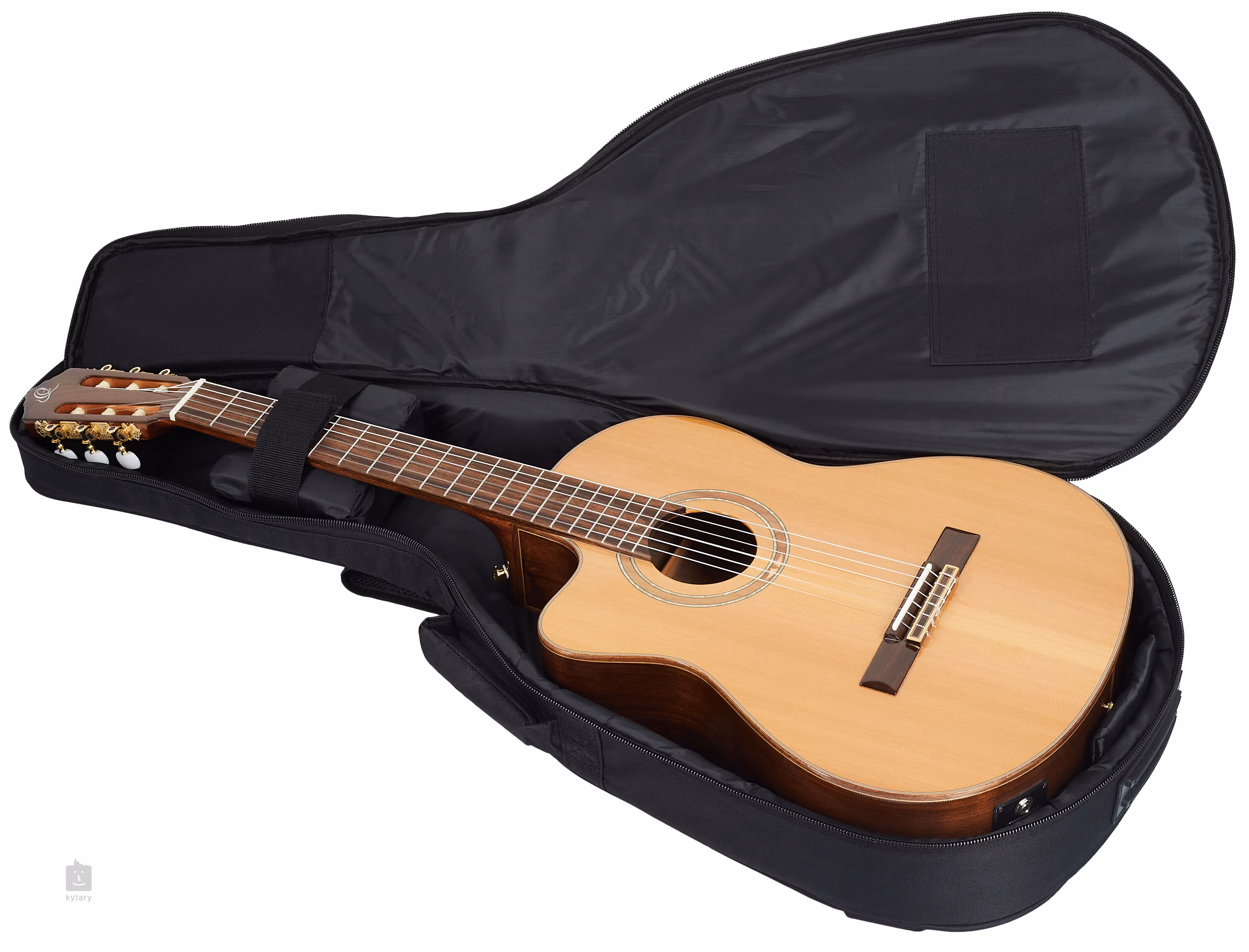Korpus gitary wykonany jest z litego cedru, płyta wierzchnia z cedru, a tył i boki z fornirowanego orzecha włoskiego. Podstrunnica z czarnego drewna przylega do mahoniowej szyjki z dwukierunkowym usztywnieniem. Struny utrzymane są w klasycznej, otwartej mechanice i dwunastootworowej podstrunnicy z orzecha włoskiego. Tradycyjne elementy dekoracyjne reprezentowane są przez wykończenie, rozetę oraz logo firmy na główce.