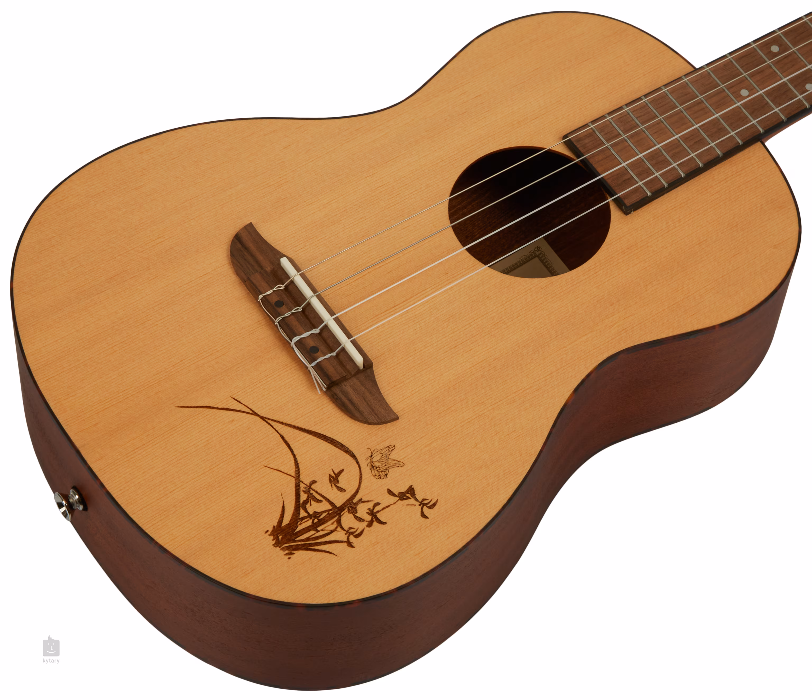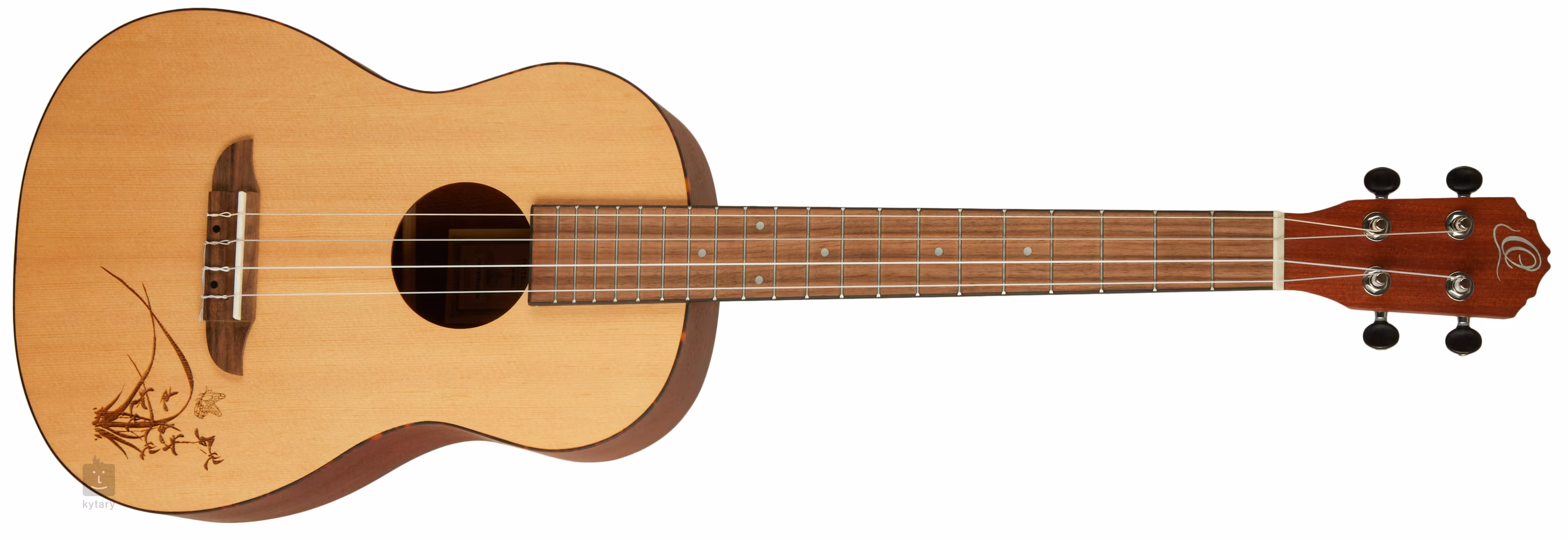 Warstwowy korpus ukulele barytonowego RU5-BA wykonany jest z laminowanego świerku, a tył i boki z laminowanego sapele. Przednia płyta jest ozdobiona laserowym grawerem, a korpus jest otoczony paskiem z materiału ABS. Mahoniowa szyjka jest połączona z orzechową podstrunnicą z osiemnastoma progami, a kropki pozycyjne ułatwiają nawigację. Struny są zamontowane w orzechowej podstrunnicy i zamkniętych maszynkach do strojenia typu gitarowego (Die-Cast).