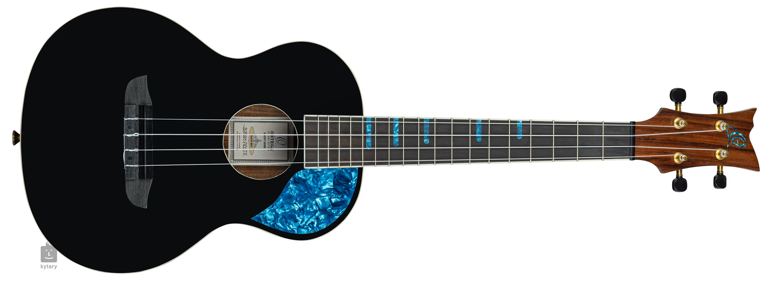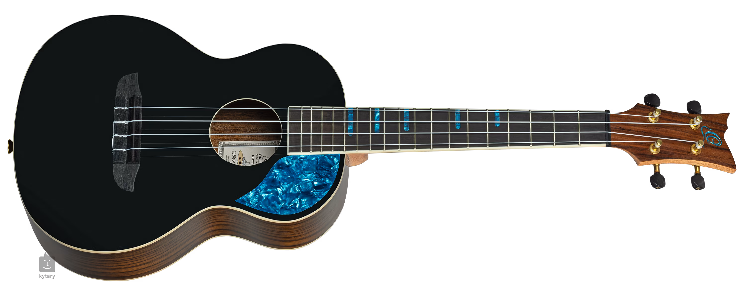 Ortega RUGH-BKT to tenorowe ukulele akustyczne z serii Ghost. Przód instrumentu wykonany jest z litego świerku, który jest uzupełniony wizualnie spektakularną nakładką z palisandru na plecach i bokach. Palisander podkreślony jest błyszczącym lakierem, podczas gdy płyta rezonansowa ozdobiona jest wykończeniem Gloss Black i imponującym pickguardem z "niebieskiej perły".