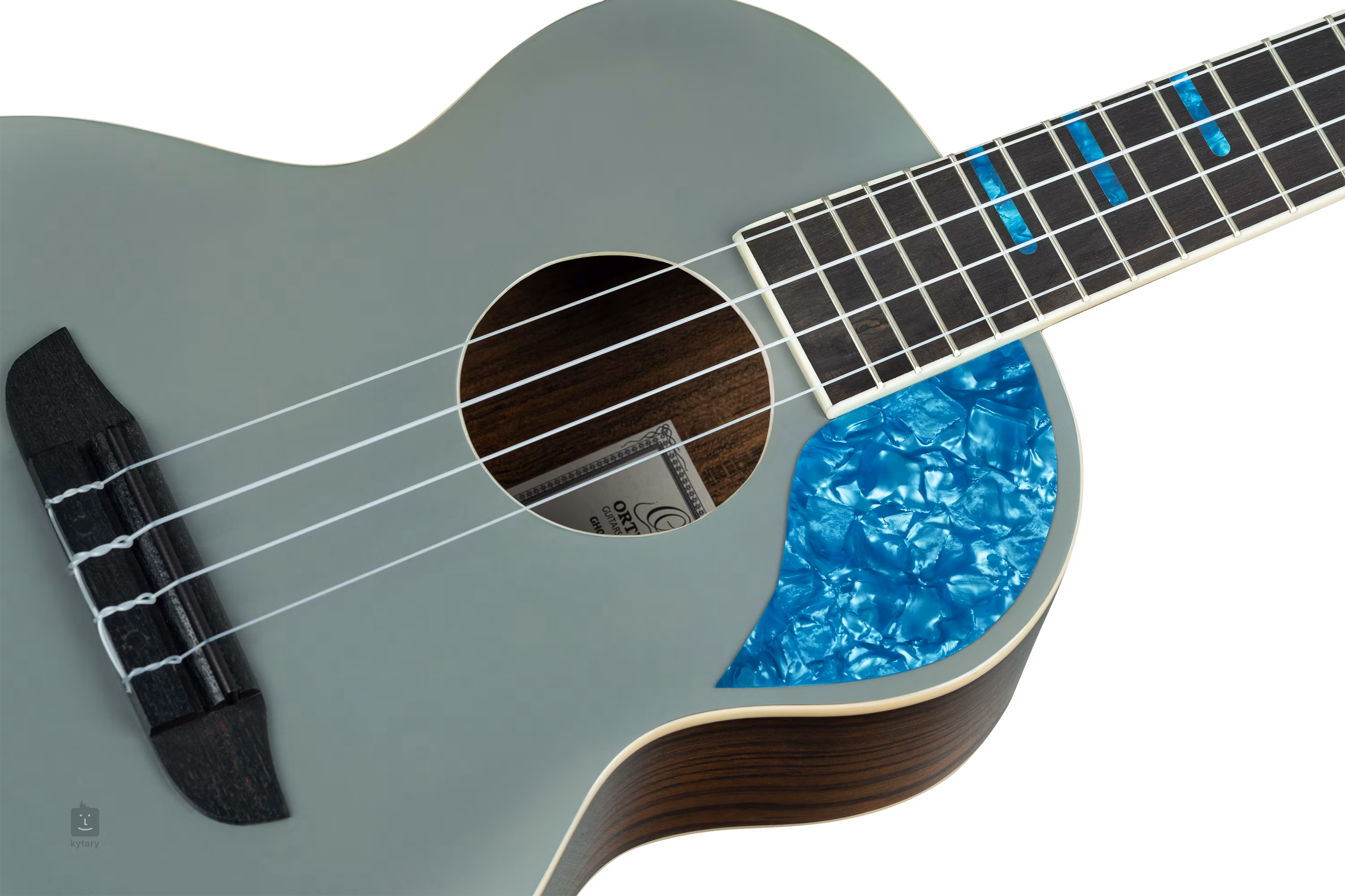 Ortega RUGH-PLT to tenorowe ukulele akustyczne z serii Ghost. Przód instrumentu wykonany jest z litego świerku, który jest uzupełniony wizualnie spektakularną nakładką z palisandru na plecach i bokach. Palisander podkreślony jest błyszczącym lakierem, a płytę rezonansową zdobi wykończenie Gloss Platinum i imponujący pickguard w kolorze "blue pearl".