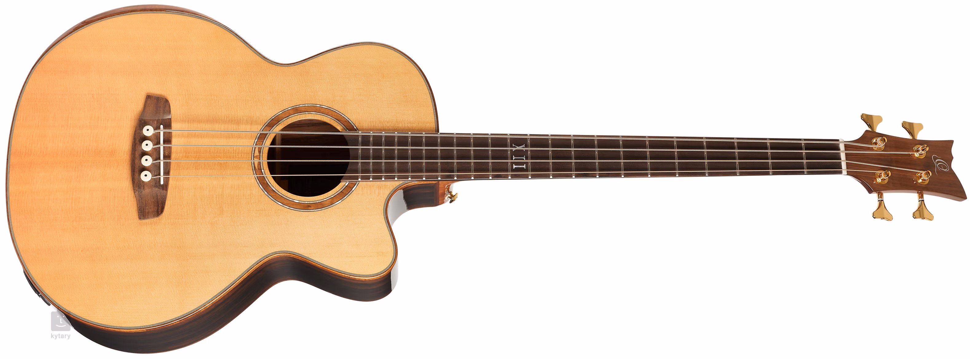 Opcję nagłośnienia, bo po prostu chcemy nagłośnić bas akustyczny, oferuje przedwzmacniacz MagusPRO z trzypasmowym korektorem, inwerterem fazy i wbudowanym tunerem. Ładne wykonanie podkreśla odlewana mechanika w złotym wykończeniu, praktyczny podłokietnik, akacjowy binding obwodowy, orzechowy binding podstrunnicy i rozeta złożona z masy perłowej, klonu i orzecha włoskiego.