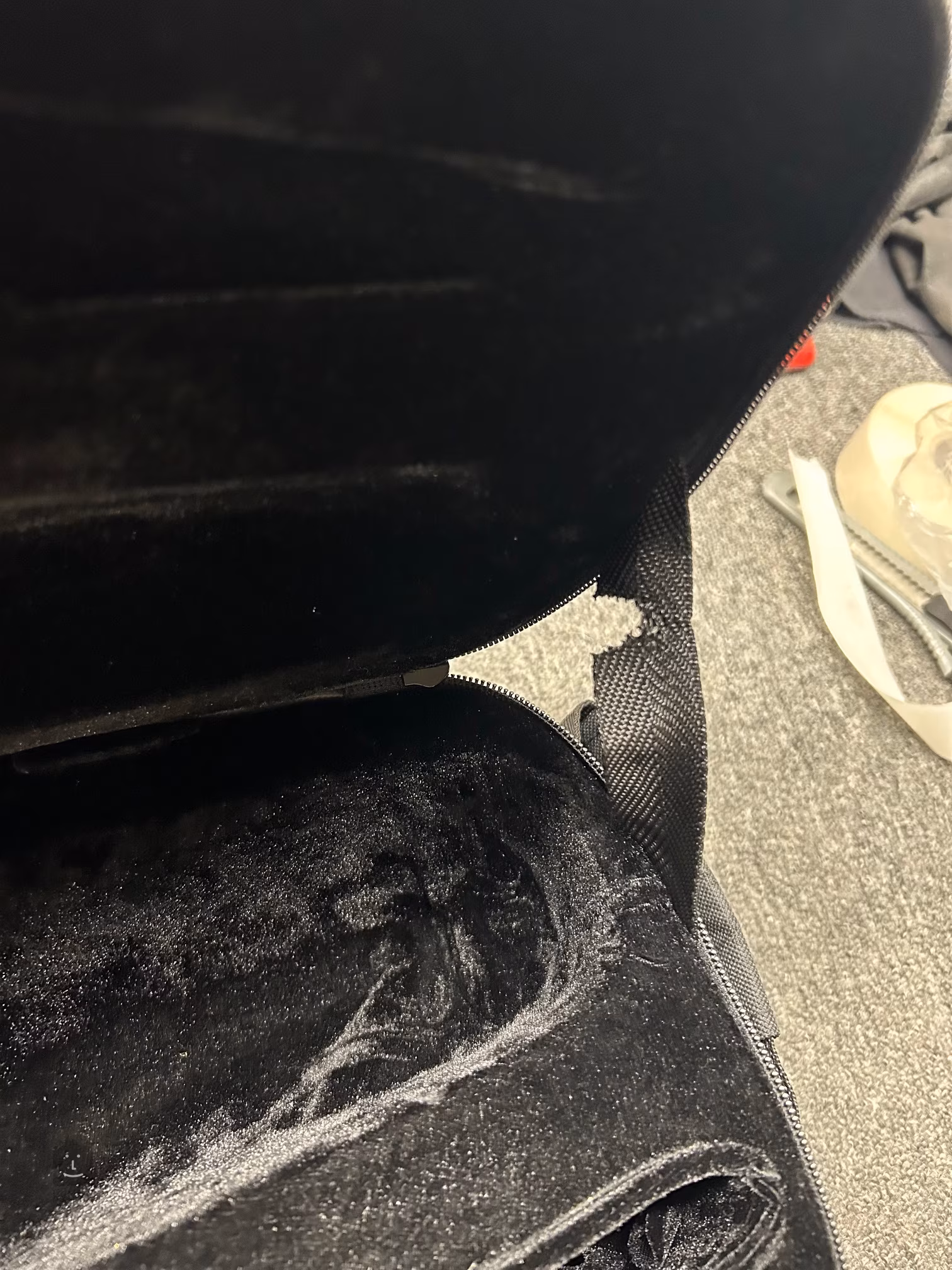 Rozdarcie między górną a dolną częścią futerału (patrz zdjęcie).