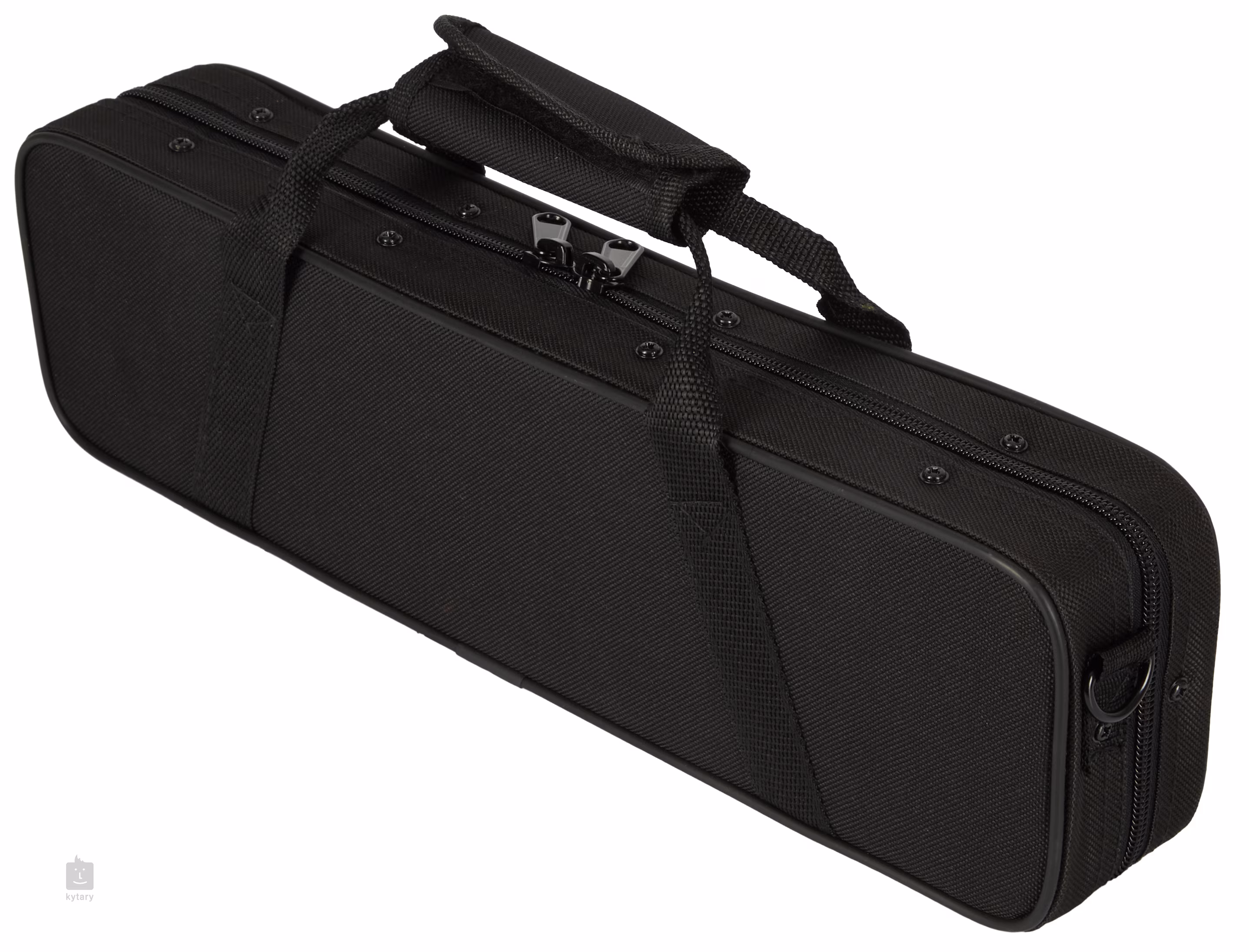 Futerał na flet poprzeczny wykonany z plastyfikowanego poliestru. Posiada zewnętrzną kieszeń na drobne akcesoria, wyprofilowane wnętrze (polistyren) z welurową wyściółką, rączkę, pasek na ramię i zapięcie na zamek błyskawiczny.