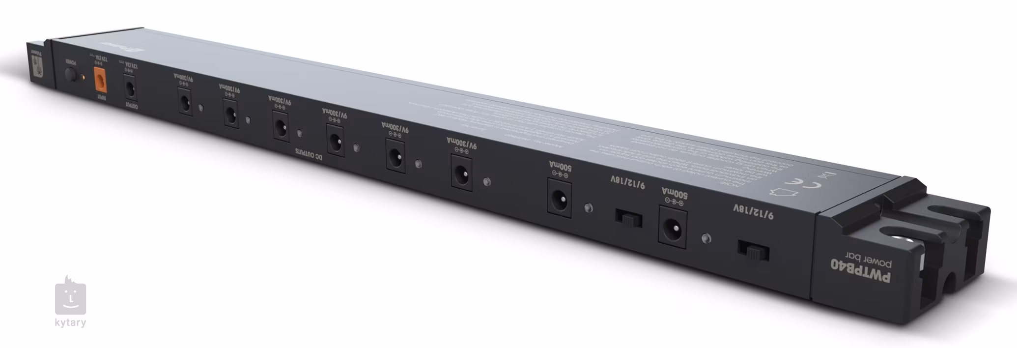 Multi-adapter Palmer WT PB 40 został zaprojektowany specjalnie dla pedalboardu Pedalbay 40, z którym można go łatwo zintegrować, aby uzyskać dyskretne i wydajne rozwiązanie do zasilania efektów. Oferuje sześć standardowych wyjść 9 V z maksymalnym poborem 300 mA i dwa wyjścia z przełączanymi napięciami między 9, 12 i 18 V (500 mA). Całkowity maksymalny pobór multi-adaptera wynosi 2000 mA. Urządzenie posiada zabezpieczenie przeciwprzepięciowe oraz diody LED na każdym wyjściu sygnalizujące zwarcie.