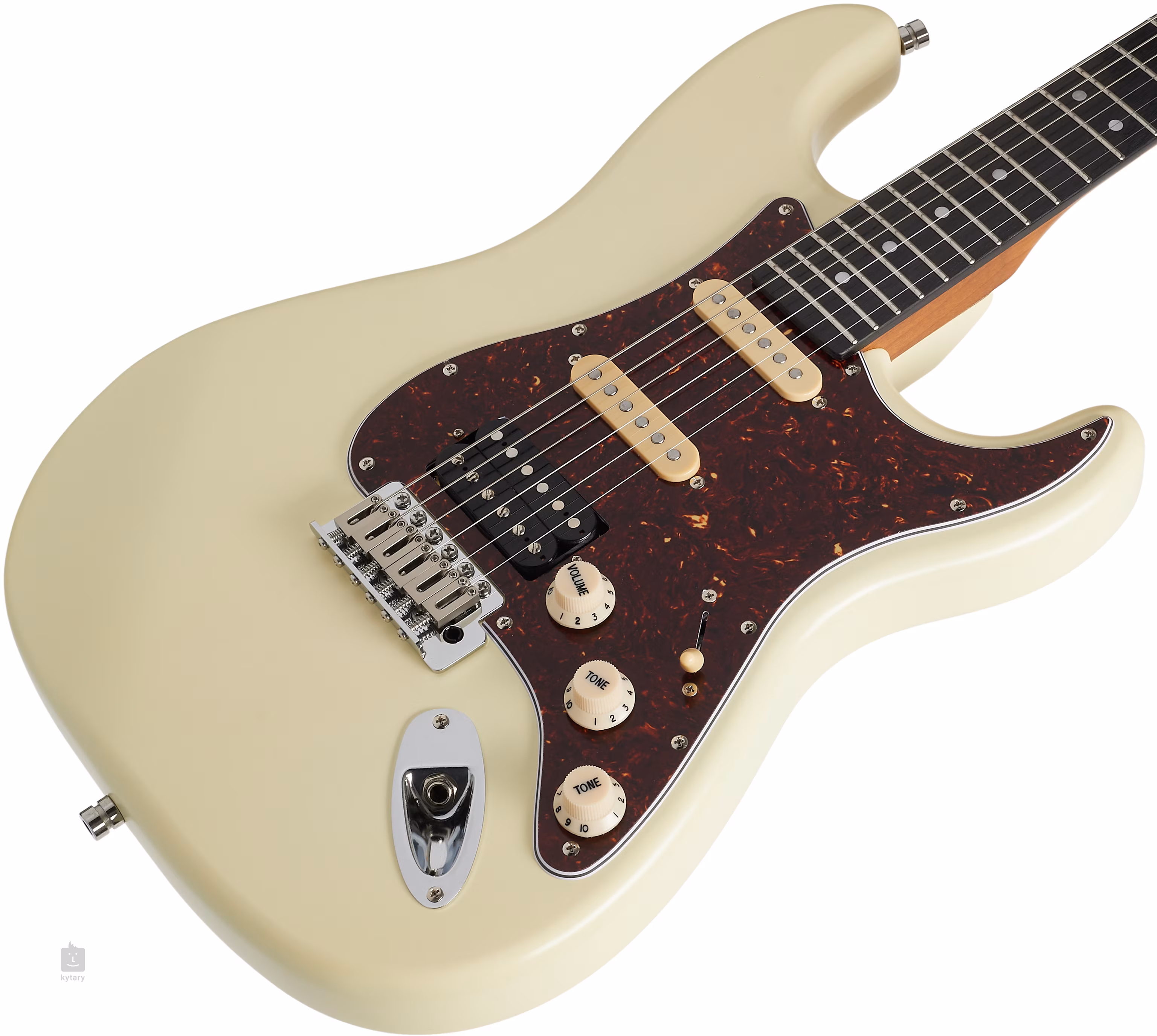 Konfiguracja HSS ręcznie nawijanych przetworników z magnesami Alnico V zapewnia gitarze zarówno klasyczne czyste brzmienie pojedynczych cewek ST, jak i mocne brzmienie humbuckera mostkowego. Kontury brzmienia można regulować za pomocą standardowych pokręteł. Struny są zamocowane przez zerowy próg z kości w zamykanych mechanizmach strojących o przełożeniu 1:19 i tremolo. Stylowe wykończenie podkreśla pickguard z imitacji szylkretu.