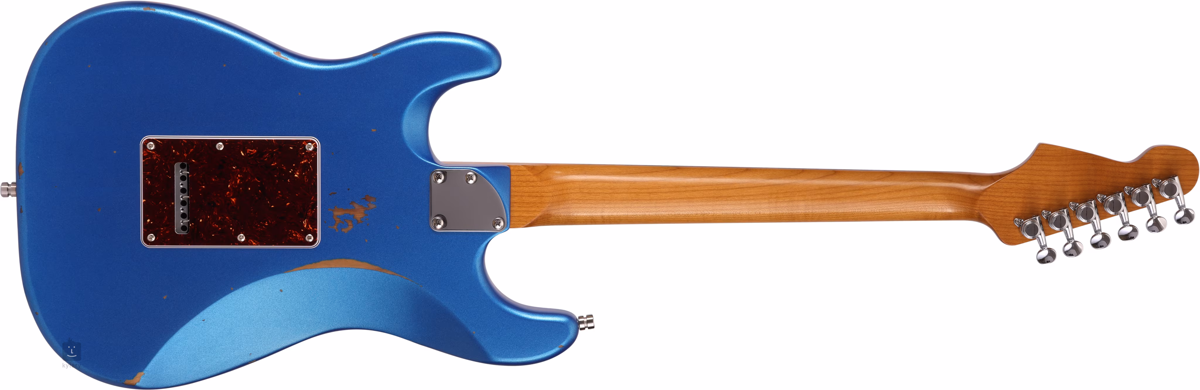 Trzy ręcznie nawijane przetworniki single-coil z magnesami Alnico V zapewniają gitarze czysty, dynamiczny dźwięk. Jego kontury można regulować za pomocą standardowych pokręteł. Struny są zamocowane przez zerowy próg z kości w zamykanych mechanizmach strojących o przełożeniu 1:19 i tremolo. Stylowe wykończenie podkreśla imitacja szylkretu na płycie przedniej.