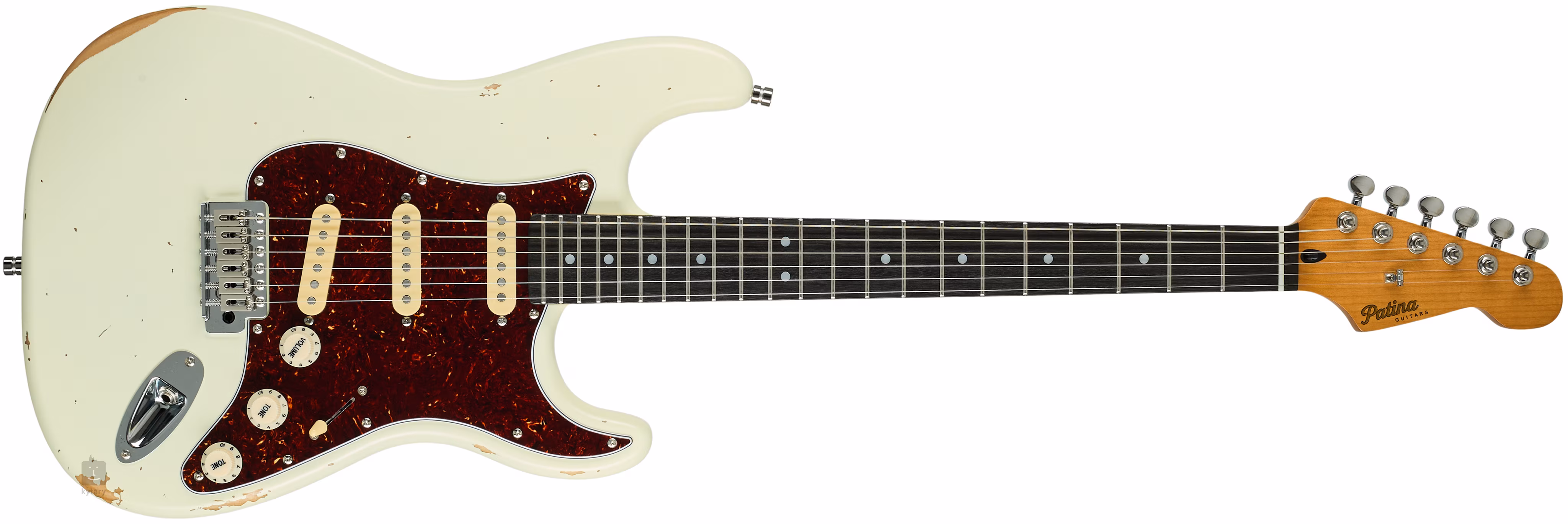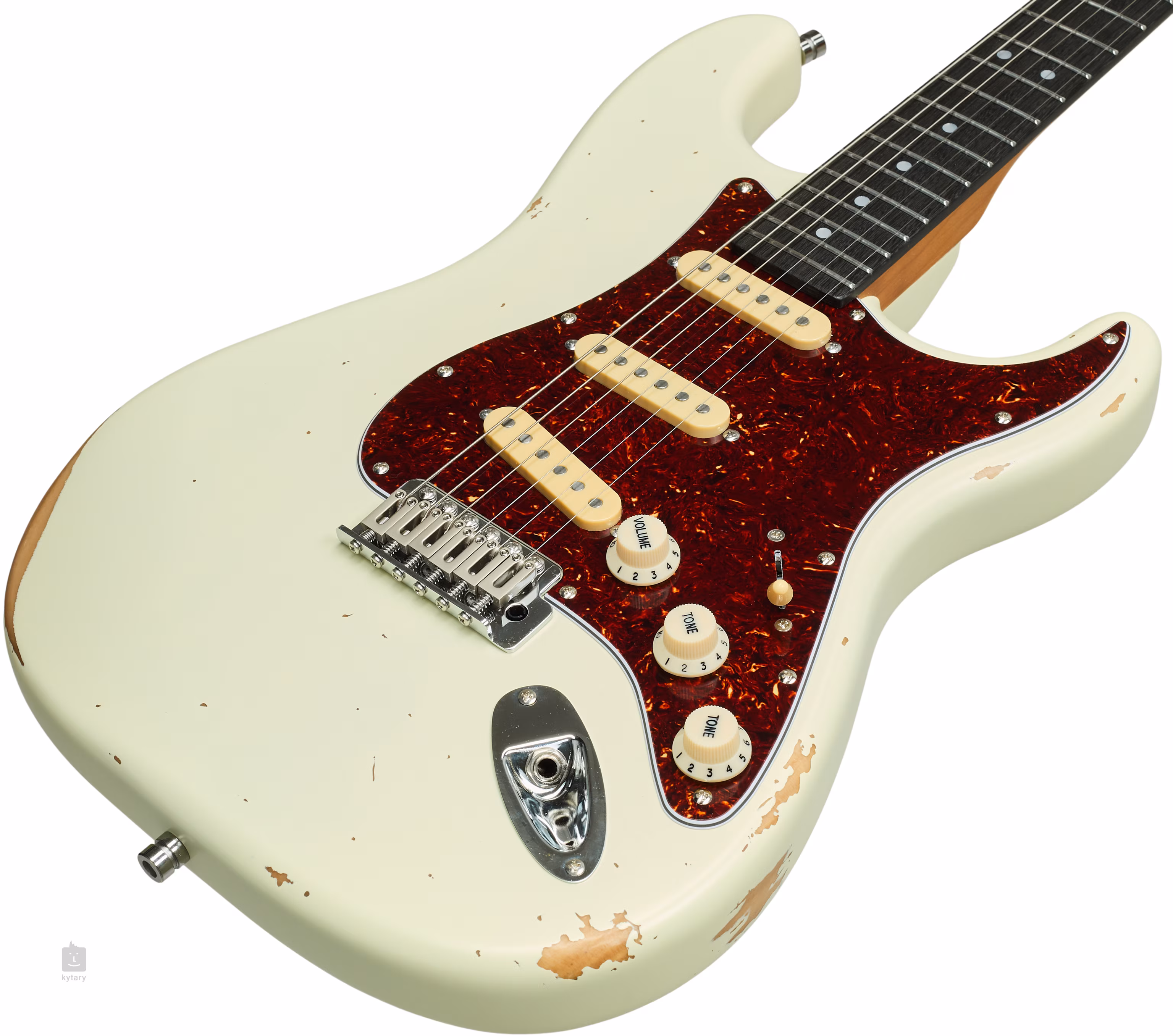 Trzy ręcznie nawijane przetworniki single-coil z magnesami Alnico V zapewniają gitarze czysty, dynamiczny dźwięk. Jego kontury można regulować za pomocą standardowych pokręteł. Struny są zamocowane przez zerowy próg z kości w zamykanych mechanizmach strojących o przełożeniu 1:19 i tremolo. Stylowe wykończenie podkreśla imitacja szylkretu na płycie przedniej.
