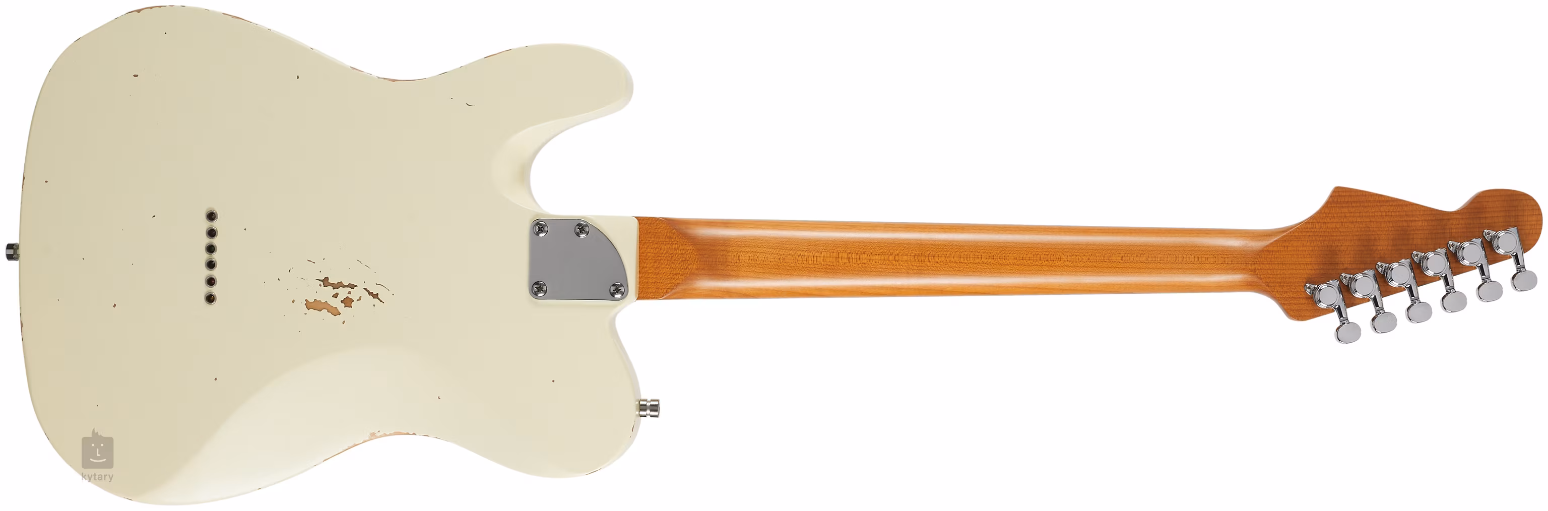 Korpus gitary elektrycznej PT-6 OW R wykonany jest z drewna paulownia i ozdobiony ręcznie nakładanym lakierem nitrocelulozowym oraz postarzanym wykończeniem z elementami sztucznej patyny. Po co czekać dziesiątki lat na odpowiedni wygląd i klimat vintage, skoro można go mieć od razu. Do klonowego gryfu przyklejono palisandrowy podstrunnicę z dwudziestoma dwoma progami ze stali nierdzewnej w rozmiarze Jumbo. Dzięki obróbce cieplnej gryf jest bardziej stabilny, a jednocześnie zyskuje przyjemny złocisty wygląd vintage. Płaska promień podstrunnicy (13,75 cala) nie pochodzi z katalogu gitar vintage, ale dzięki temu gitara może zainteresować również bardziej nowoczesnych graczy. Orientację na podstrunnicy, nawet w ciemności, ułatwiają luminescencyjne kropki na boku.