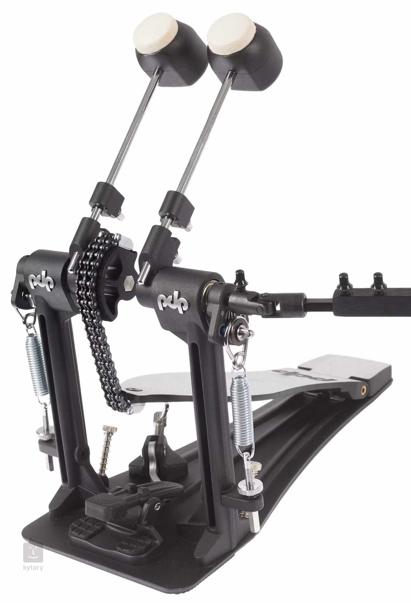 PDDPCO Double Pedal Concept Series to szybki i responsywny podwójny pedał do bębna basowego z dwułańcuchowym napędem łańcuchowym, liniową krzywką, dwustronnym bijakiem, regulacją pochylenia bijaka, gładką powierzchnią stopy ze zintegrowanym zawiasem na łożysku igiełkowym oraz solidną stalową podstawą z magnetycznym kluczem strojeniowym.