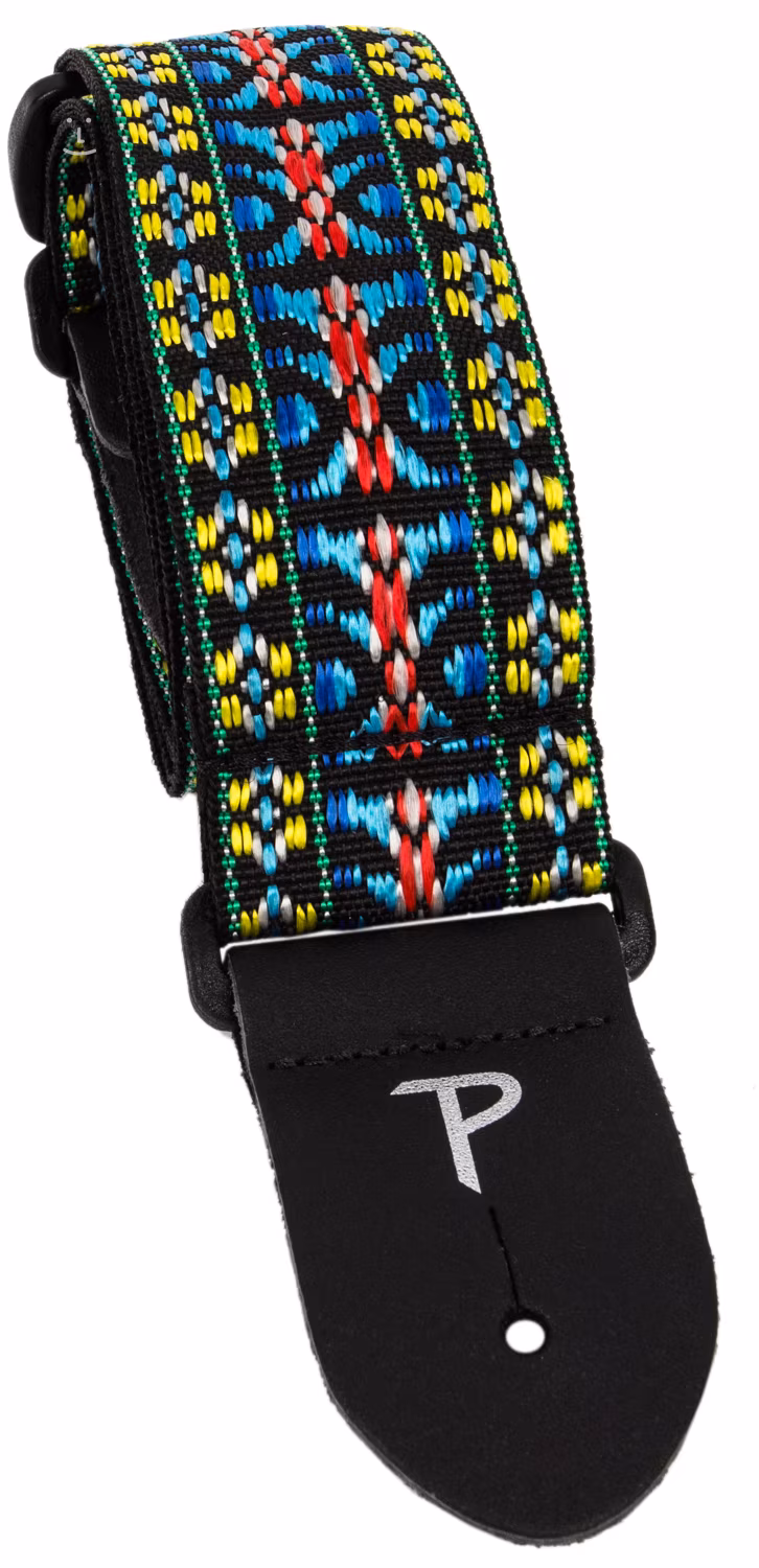 Konstrukcja tego paska do gitary jest ozdobiona wzorem w stylu Hootenanny. Skórzane końcówki gwarantują solidne przymocowanie paska do instrumentu. Regulacja długości paska jest rzeczą oczywistą.