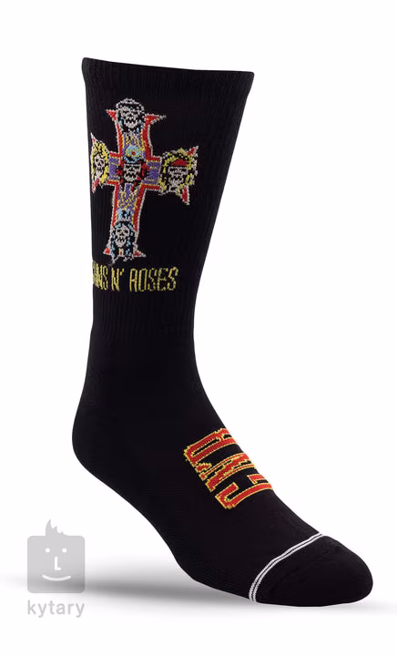 Para czarnych skarpet GUNS N' ROSES APPETITE FOR DESTRUCTION CREW w rozmiarze L (Large, mężczyźni 9-12, kobiety 11-14). 51% poliester z recyklingu, 36% bawełna, 11% nylon, 2% spandex.