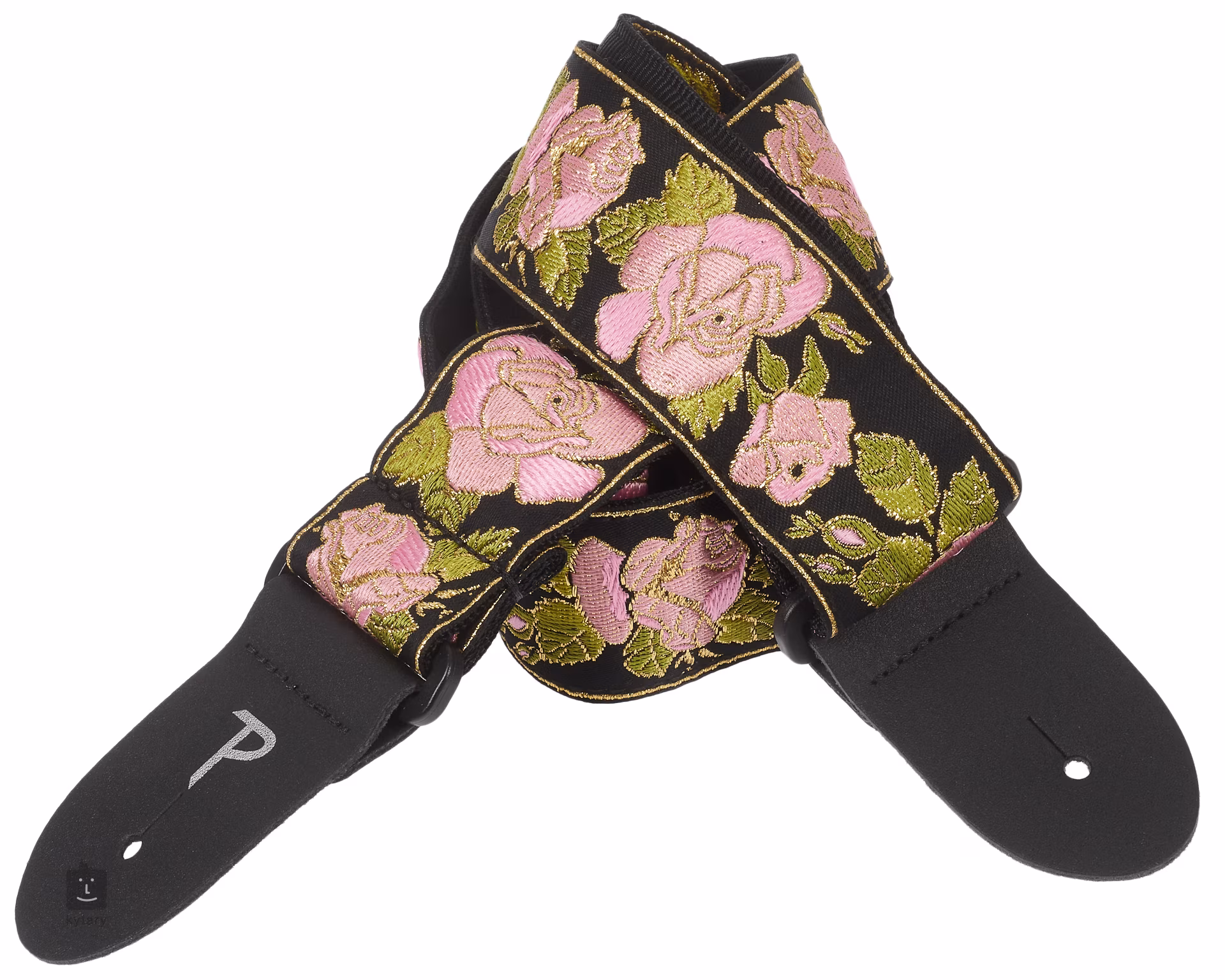 Perri's Leathers Jacquard Strap Pink And Black Flower