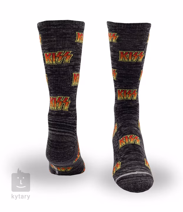 Para skarpet KISS ALL OVER LOGO CREW w rozmiarze L (Large, mężczyźni 9-12, kobiety 11-14) i mieszance charcoal. Materiał 51% poliester z recyklingu, 36% bawełna, 11% nylon, 2% spandex.