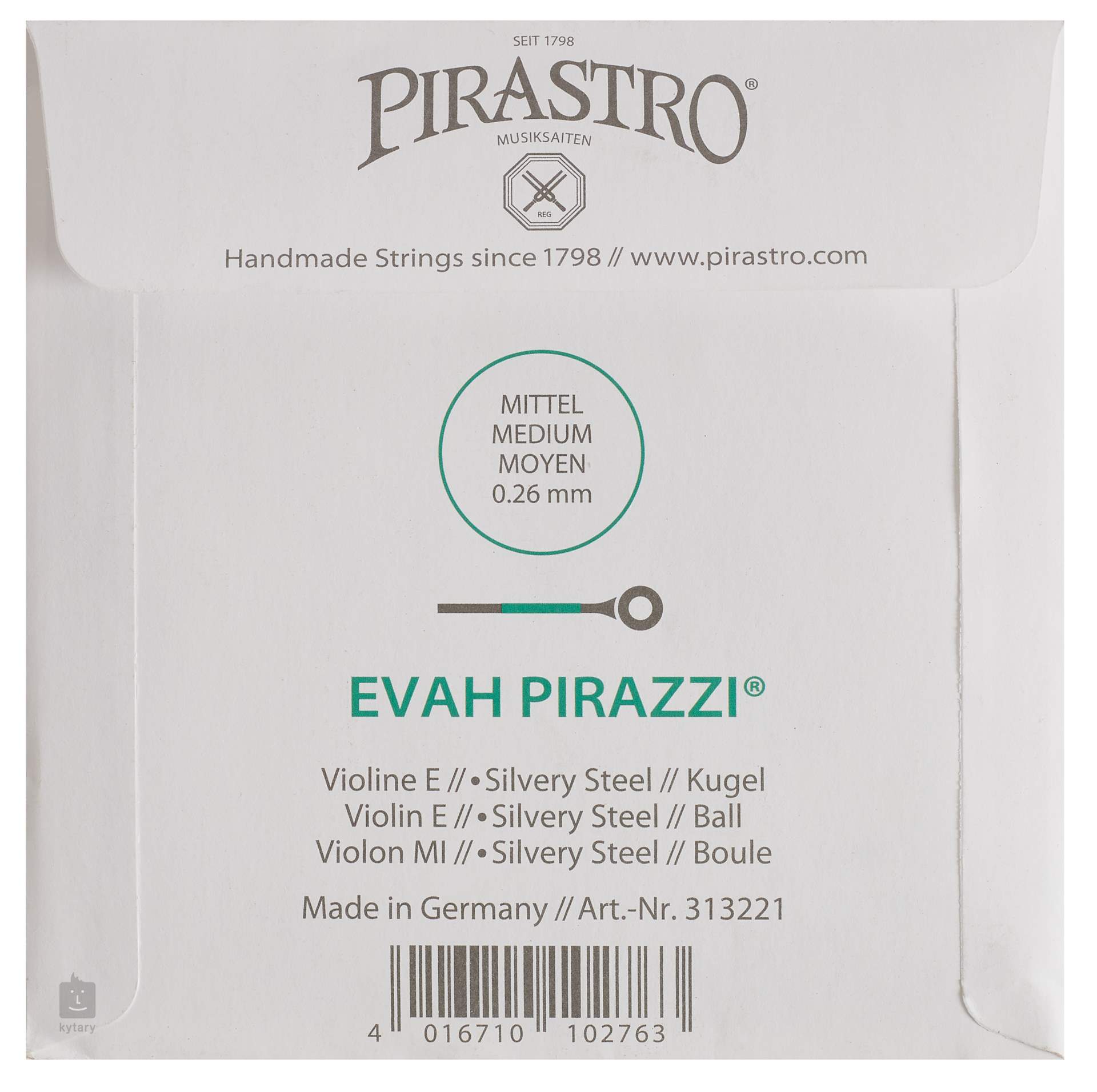 Evah Pirazzi to struny o nowoczesnej konstrukcji, których rdzeń wykonany jest z włókna syntetycznego. Rezultatem jest pełne brzmienie bogate w wyższe harmoniczne, odpowiednie zwłaszcza do gry solowej. Doskonała grywalność i wyjątkowa odpowiedź przy smyczkowaniu w każdym zakresie dynamiki. Struny syntetyczne bardzo słabo reagują na zmiany temperatury i wilgotności, co gwarantuje dobrą stabilność stroju.