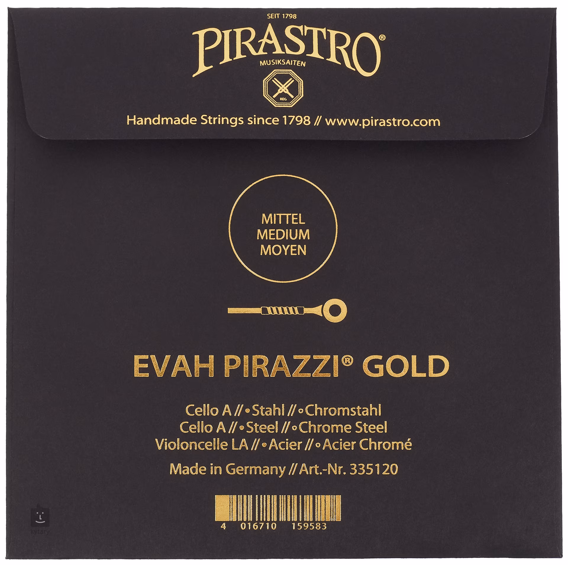 Struny Pirastro Evah Pirazzi Gold mają konstrukcję hybrydową. Struny A i D mają stalową owijkę z chromowaną stalą. Struny G i C mają stalowy rdzeń i wolframowy oplot. Oferują one znakomite, pełne brzmienie z szerokim zakresem barw.