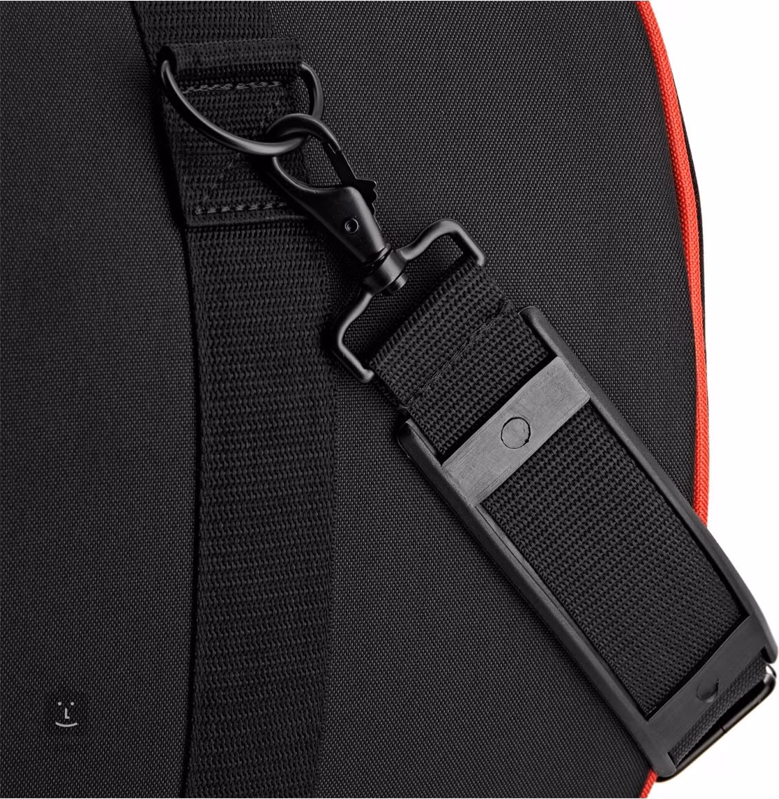 Pokrowiec wykonany jest z wytrzymałego poliestru 600D z wodoodporną powłoką, która chroni instrument przed wilgocią i zużyciem. 20-milimetrowa wyściółka skutecznie amortyzuje wstrząsy podczas transportu, a delikatna aksamitna wyściółka zapobiega zarysowaniu powierzchni bębna. Oczywistością jest wyściełany uchwyt zapewniający wygodny chwyt oraz regulowany, odpinany pasek na ramię, który umożliwia elastyczną obsługę. Bezpieczne zamknięcie zapewnia wytrzymały metalowy zamek błyskawiczny zaprojektowany do częstego użytkowania.