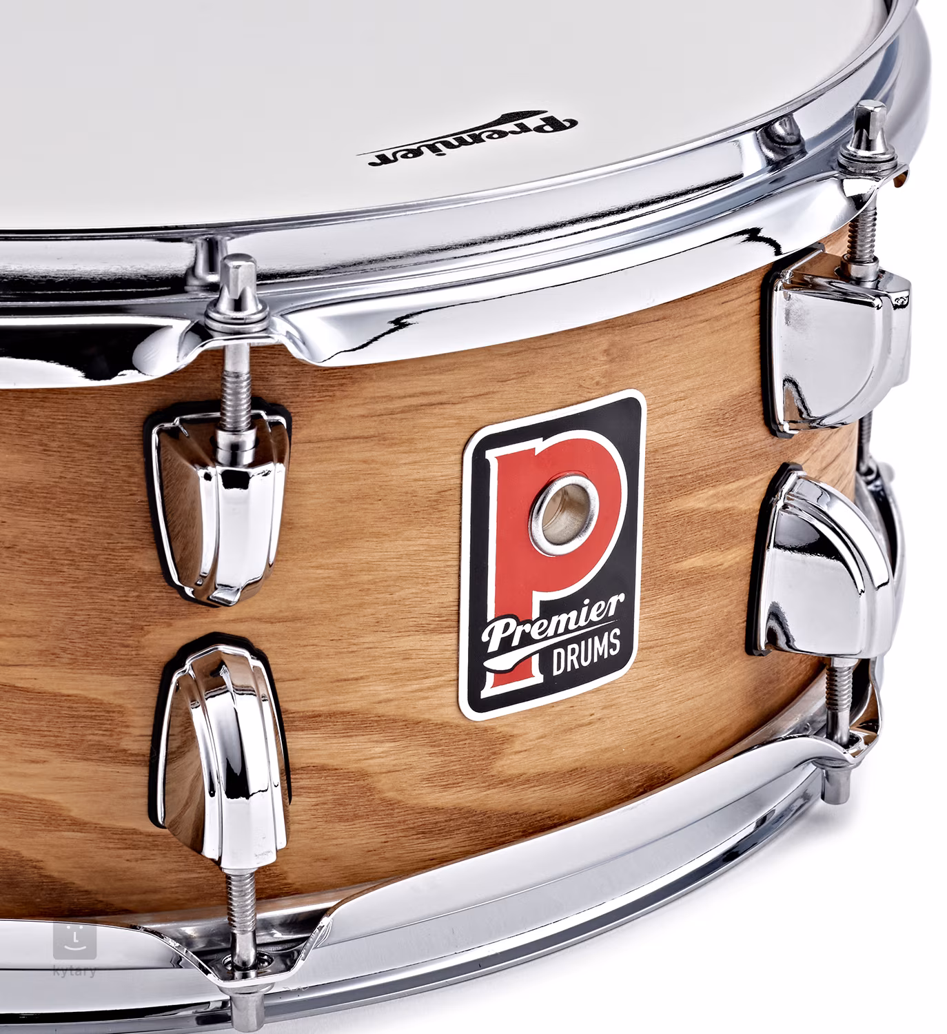Okucia bębna zostały zaprojektowane z naciskiem na niezawodność i brzmienie. Potrójne obręcze stalowe o grubości 1,5 mm (Triple-Flanged Hoops) pozwalają membranom swobodniej rezonować, zwiększając otwartość tonu i naturalną barwę dźwięku. Lekkie, niskoprofilowe lugs Premier minimalizują napięcie na korpusie i przyczyniają się do jego swobodnej rezonancji, a precyzyjne strojenie zapewnia stały komfort gry.