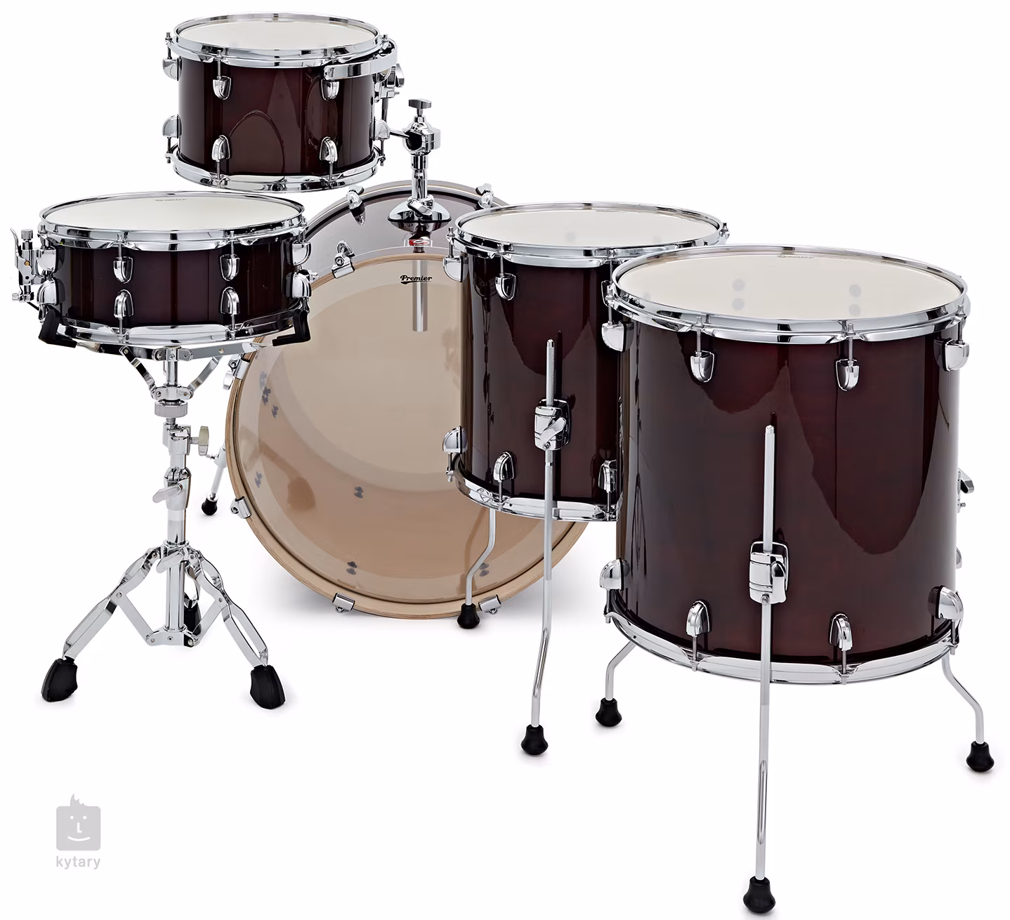 Estetyczny i funkcjonalny wygląd podkreśla atrakcyjny osprzęt inspirowany historycznymi modelami Premier. Potrójne stalowe obręcze zapewniają mocne uderzenie i doskonały dźwięk cross-stick, co docenią gracze grający w bardziej wymagających stylach. Tomy rackowe przymocowane bezpośrednio do bębna basowego dodatkowo zwiększają stabilność podczas dynamicznej gry.