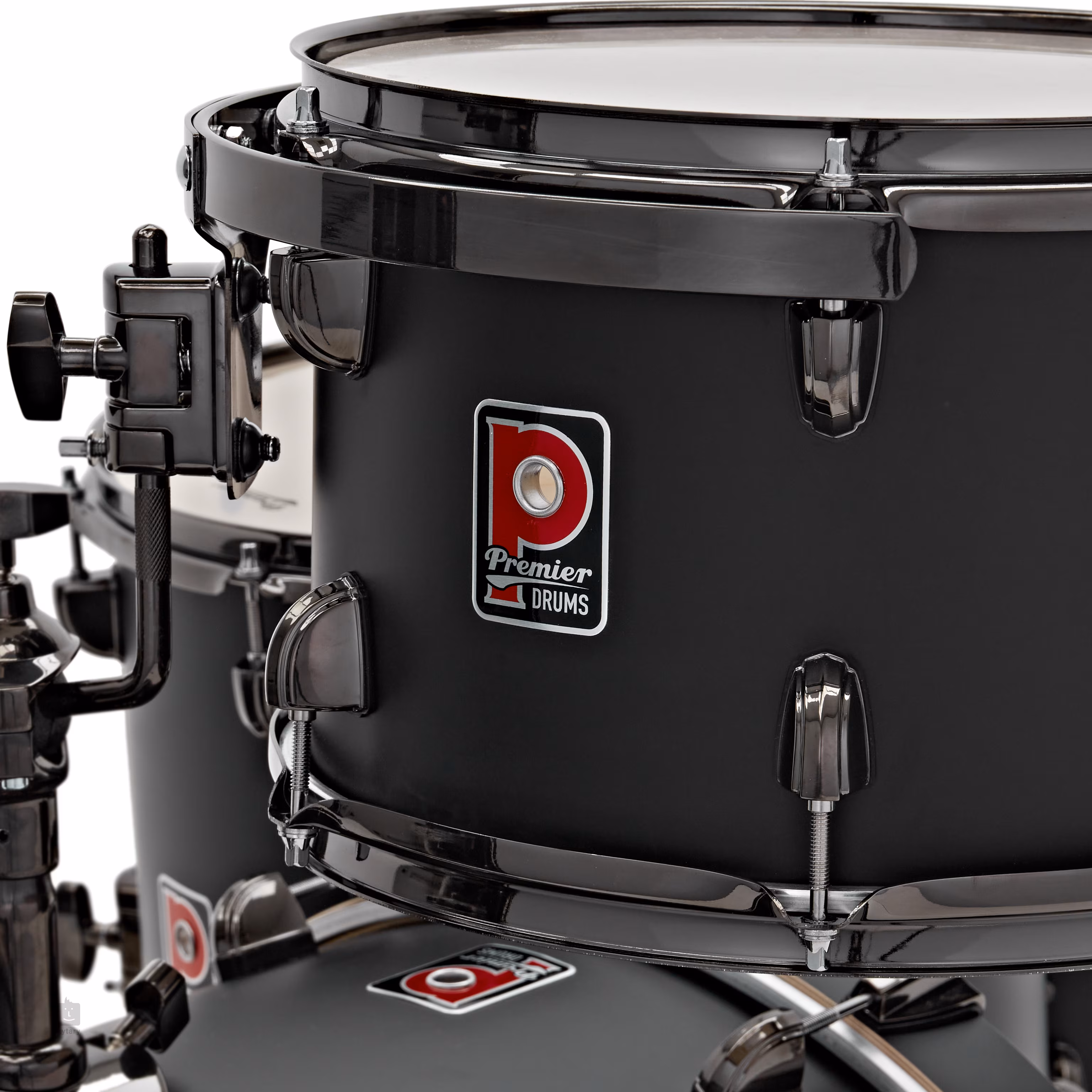 Estetyczny i funkcjonalny wygląd podkreśla atrakcyjny osprzęt inspirowany historycznymi modelami Premier. Potrójne stalowe obręcze zapewniają mocne uderzenie i doskonały dźwięk cross-stick, co docenią gracze grający w bardziej wymagających stylach. Tomy rackowe przymocowane bezpośrednio do bębna basowego dodatkowo zwiększają stabilność podczas dynamicznej gry.