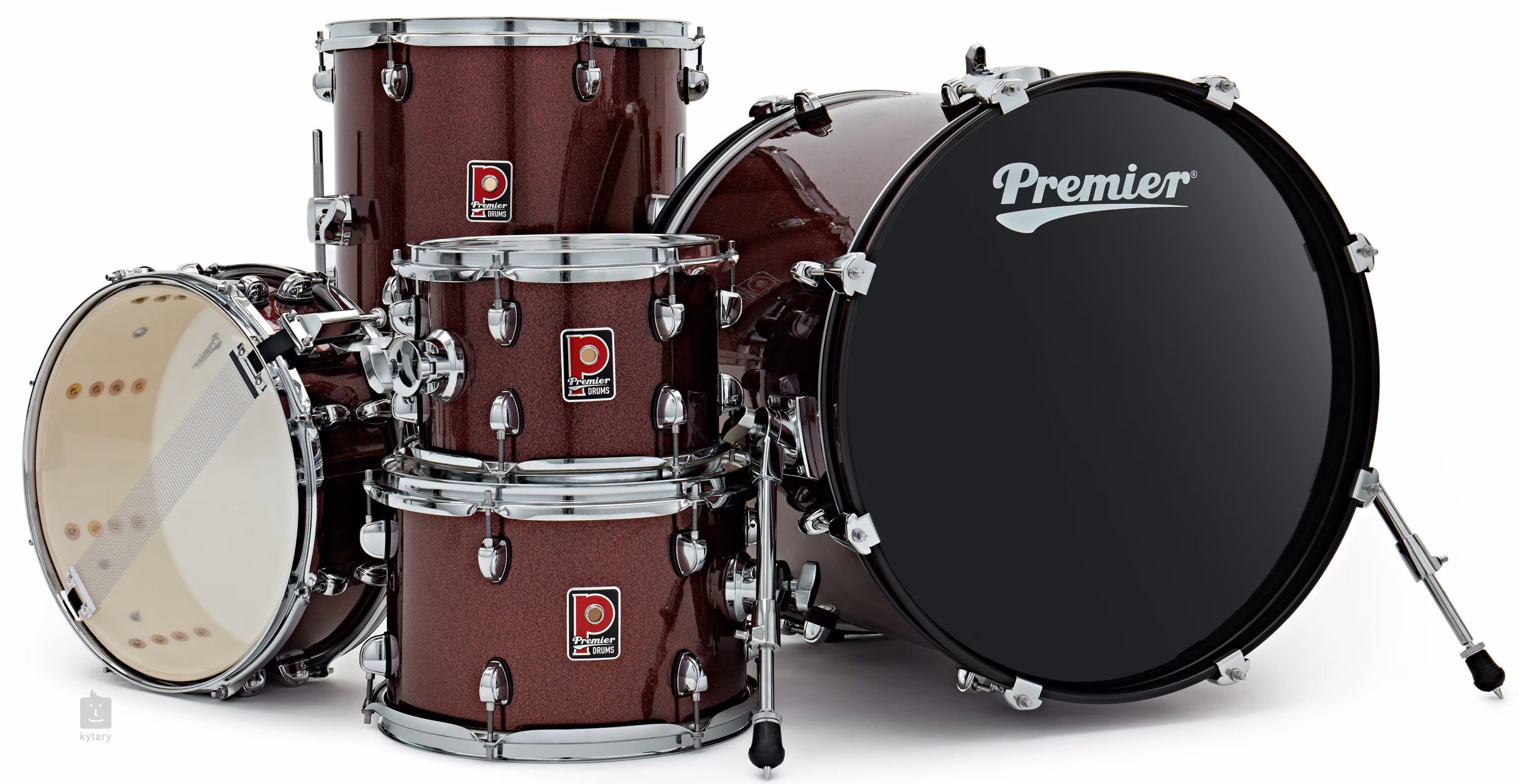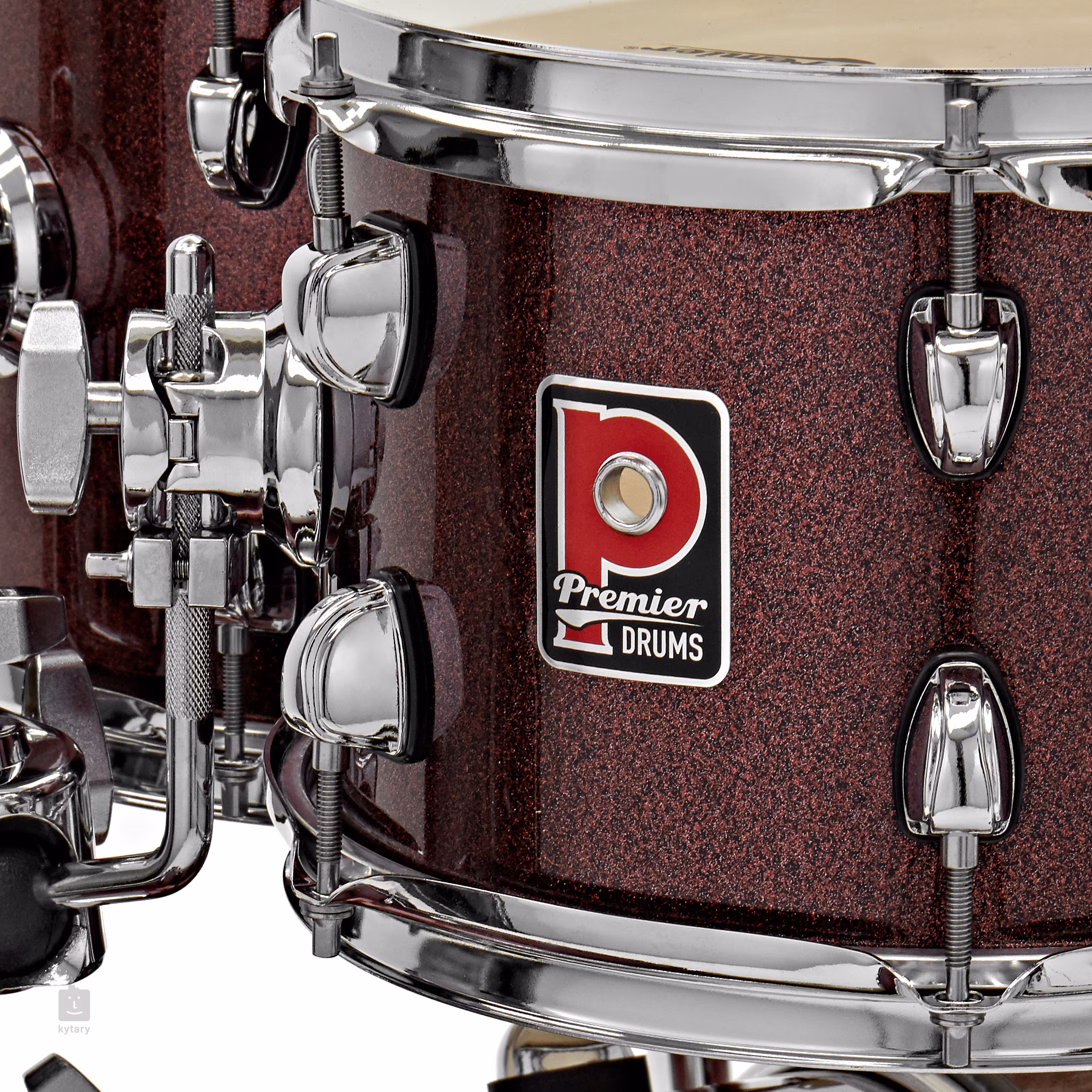 Pod względem wzornictwa zestaw uzupełnia wytrzymała powierzchnia z PVC i niskoprofilowe śruby strojące Premier Low-Mass Lugs, które zapewniają stabilne strojenie i elegancki wygląd. Stalowe potrójne obręcze zapewniają solidną ramę i czysty dźwięk rimshotów, co doceni każdy perkusista podczas gry na żywo i ćwiczeń.