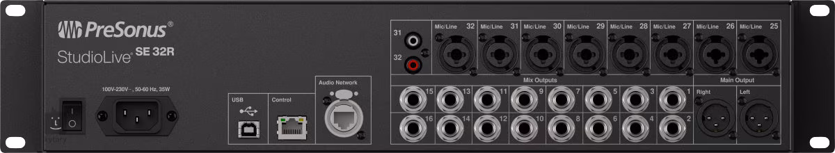 PreSonus StudioLive SE 32R to najwyższej klasy cyfrowy mikser rackowy przeznaczony do dużych produkcji, tras koncertowych oraz profesjonalnych instalacji. Oferuje dużą liczbę kanałów, niezwykłą elastyczność oraz studyjną jakość dźwięku w kompaktowej obudowie rackowej. Dzięki 32 przedwzmacniaczom mikrofonowym i zaawansowanemu przetwarzaniu DSP jest idealnym centrum nagłośnienia na żywo, miksowania monitorowego, a także jako stagebox w ramach ekosystemu StudioLive Series III.