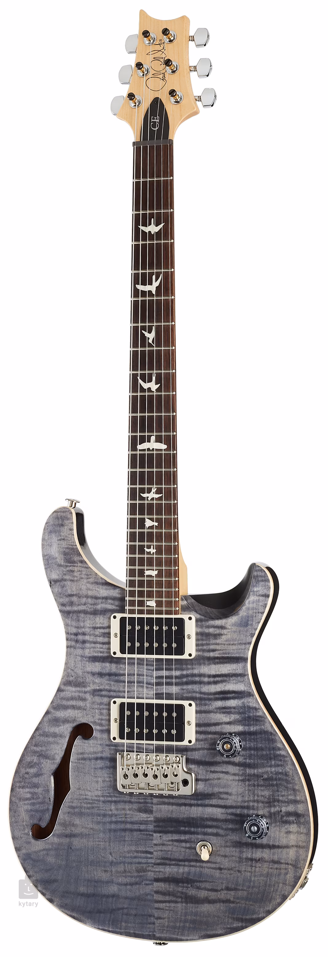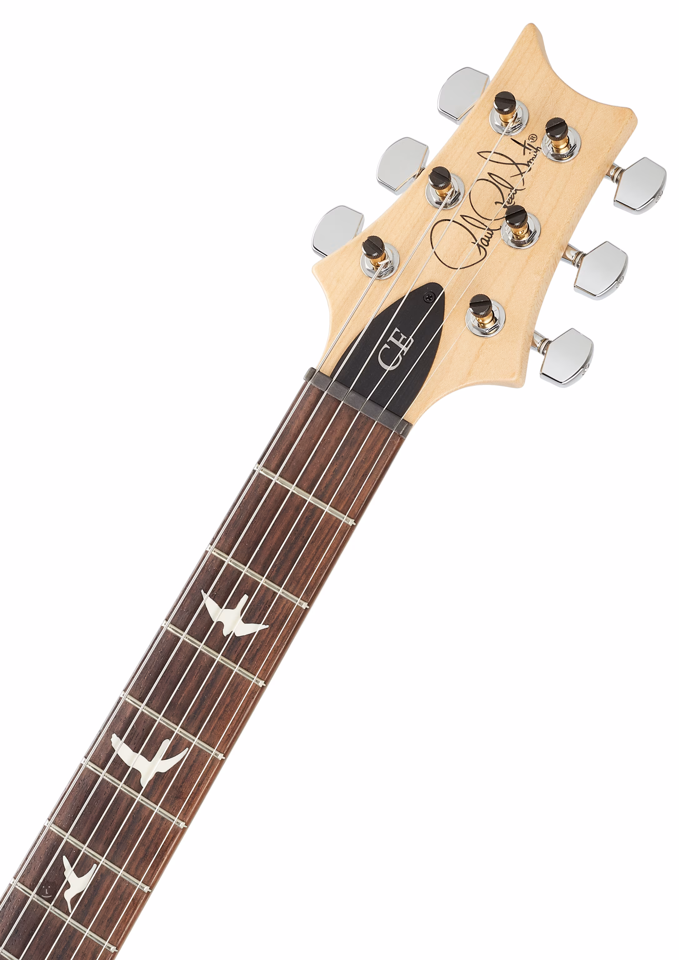 Model CE 24 Semi-Hollow oferuje ergonomiczny kształt gitar elektrycznych PRS z dwoma cutaways połączony z rezonansową konstrukcją korpusu semi-hollow. Sam mahoniowy korpus zdobi efektowny top z klonu płomienistego wsparty bejcą i wykończeniem Nitro over Cellulose (CAB). Do klonowej szyjki Pattern Thin przyklejona jest palisandrowa podstrunnica wyposażona w dwadzieścia cztery progi. Znaczniki pozycji w postaci sylwetek ptaków z masy perłowej ułatwiają orientację na powierzchni podstrunnicy.