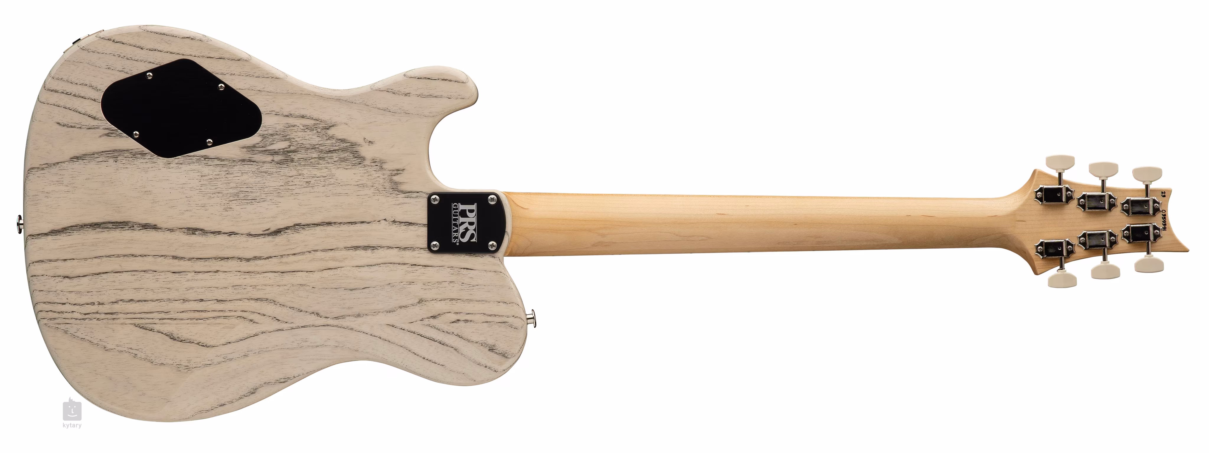 Struny są zamontowane na kościanej podstrunnicy w stylu vintage PRS mechanicals i stalowej główce PRS plate-style z mosiężnymi siodełkami. Stylowe wykończenie jest podkreślone przez czarny pickguard, niklowy osprzęt i błyszczący lakier nitro, który podkreśla wzór jesionu bagiennego.