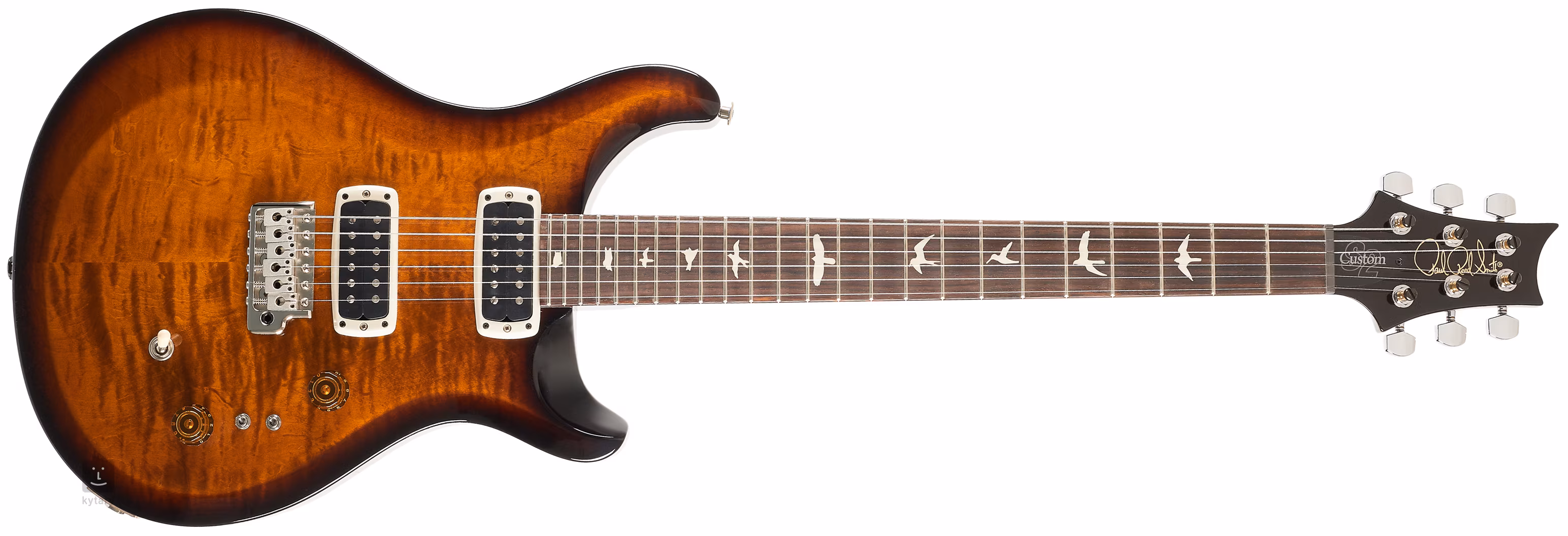 Mahoniowy korpus gitary S2 Custom 24-08 Black Amber, z charakterystycznym dla PRS podwójnym wycięciem, ozdobiony jest fantazyjnym topem z klonu płomienistego i wykończony błyszczącym lakierem. Wyraźnie ścięte krawędzie korpusu sprzyjają ogólnej ergonomii gry. Palisandrowa podstrunnica z dwudziestoma czterema progami jest przyklejona do mahoniowej szyjki o profilu Pattern Thin. Znaczniki pozycji w postaci sylwetek ptaków z masy perłowej ułatwiają orientację na powierzchni podstrunnicy.