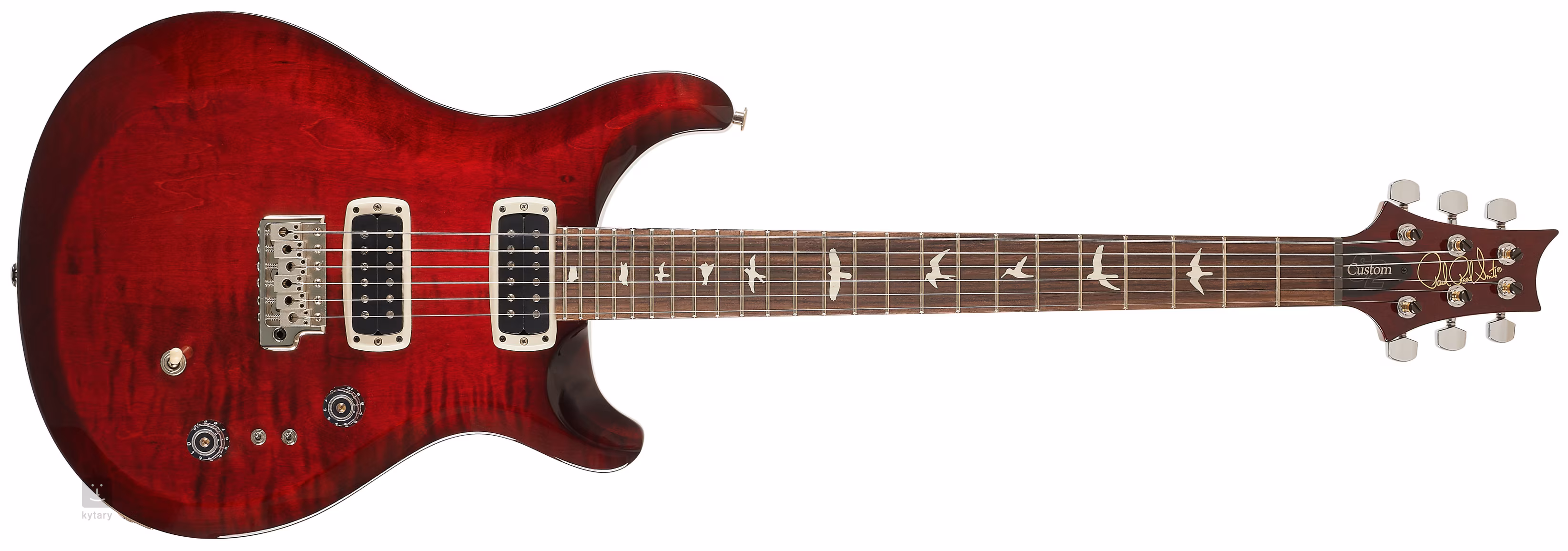 Mahoniowy korpus gitary S2 Custom 24-08 FR Fire Red Burst, z charakterystycznym dla PRS podwójnym wycięciem, ozdobiony jest fantazyjnym topem z klonu płomienistego z dopasowanym kolorystycznie, błyszczącym wykończeniem nitro. Wyraźnie ścięte krawędzie korpusu sprzyjają ogólnej ergonomii gry. Palisandrowa podstrunnica wyposażona w dwadzieścia cztery progi jest przyklejona do mahoniowej szyjki o profilu Pattern Thin. Znaczniki pozycji w postaci sylwetek ptaków z masy perłowej ułatwiają orientację na podstrunnicy.