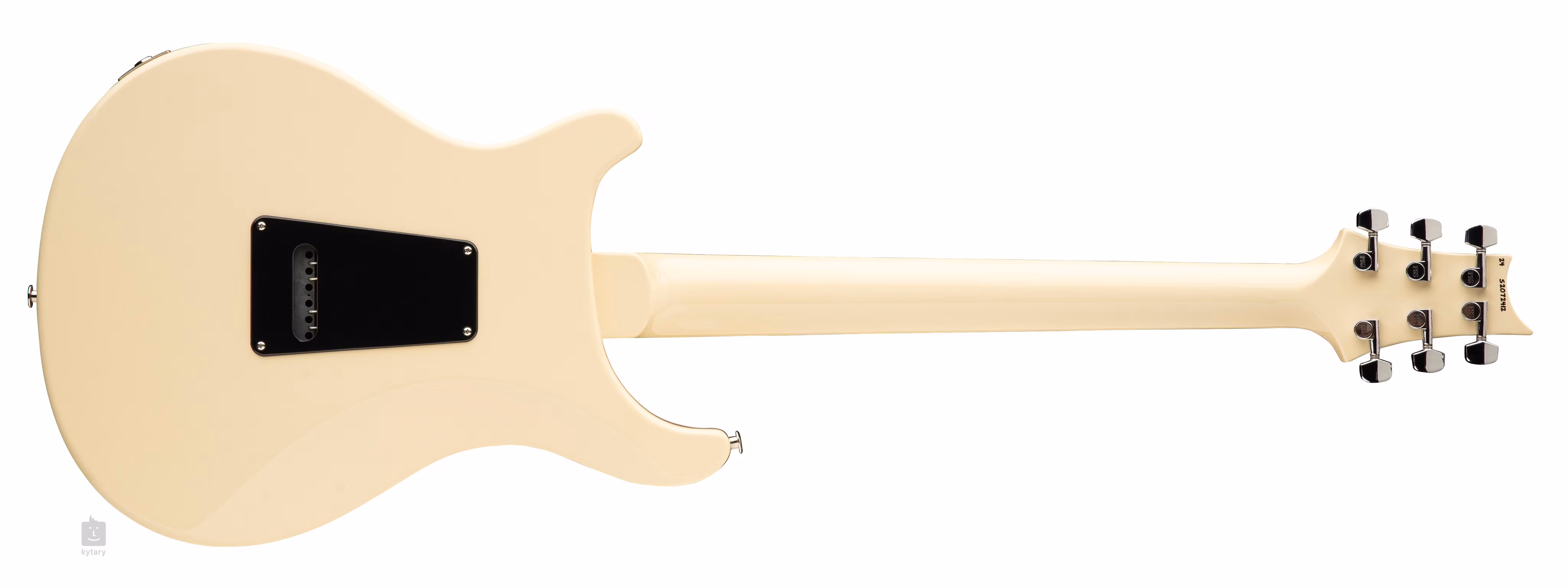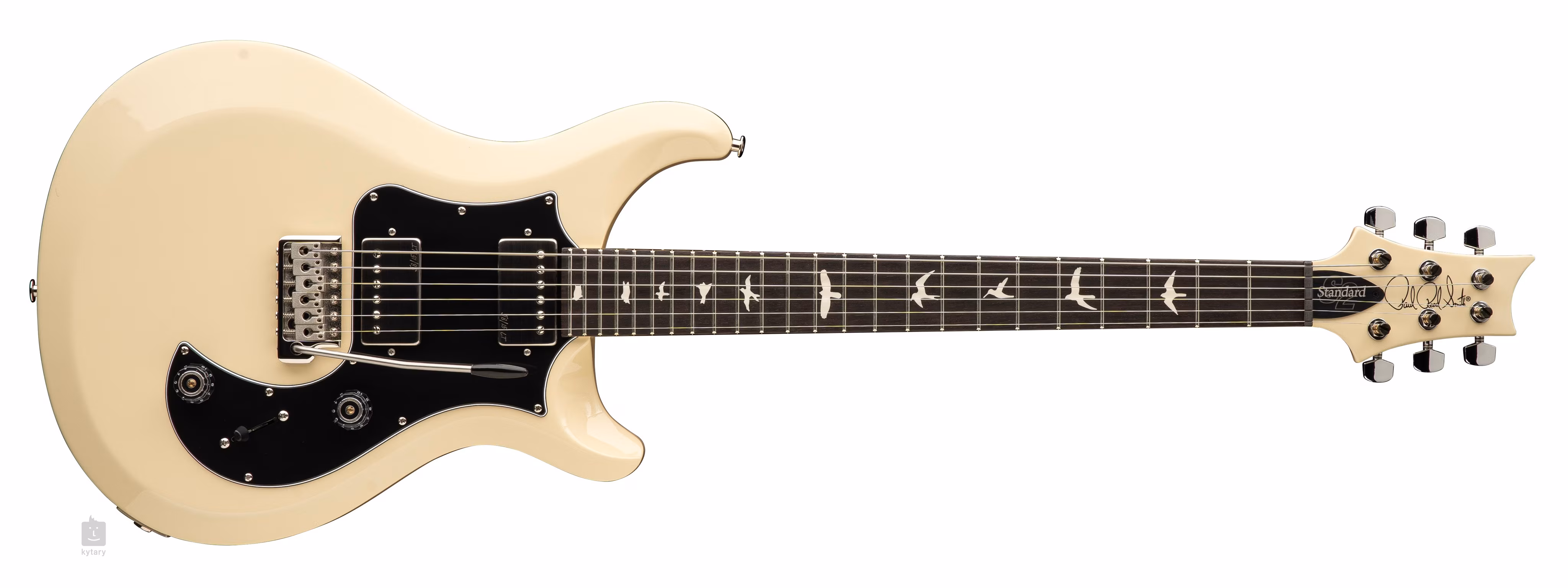 Mahoniowy korpus gitary S2 Standard 24 Antique White został ozdobiony cienką warstwą błyszczącego nitrolaku. Palisandrowa podstrunnica z dwudziestoma czterema progami jest przyklejona do mahoniowej szyjki o profilu Pattern Thin. Znaczniki pozycji w postaci sylwetek ptaków z masy perłowej ułatwiają orientację na podstrunnicy.