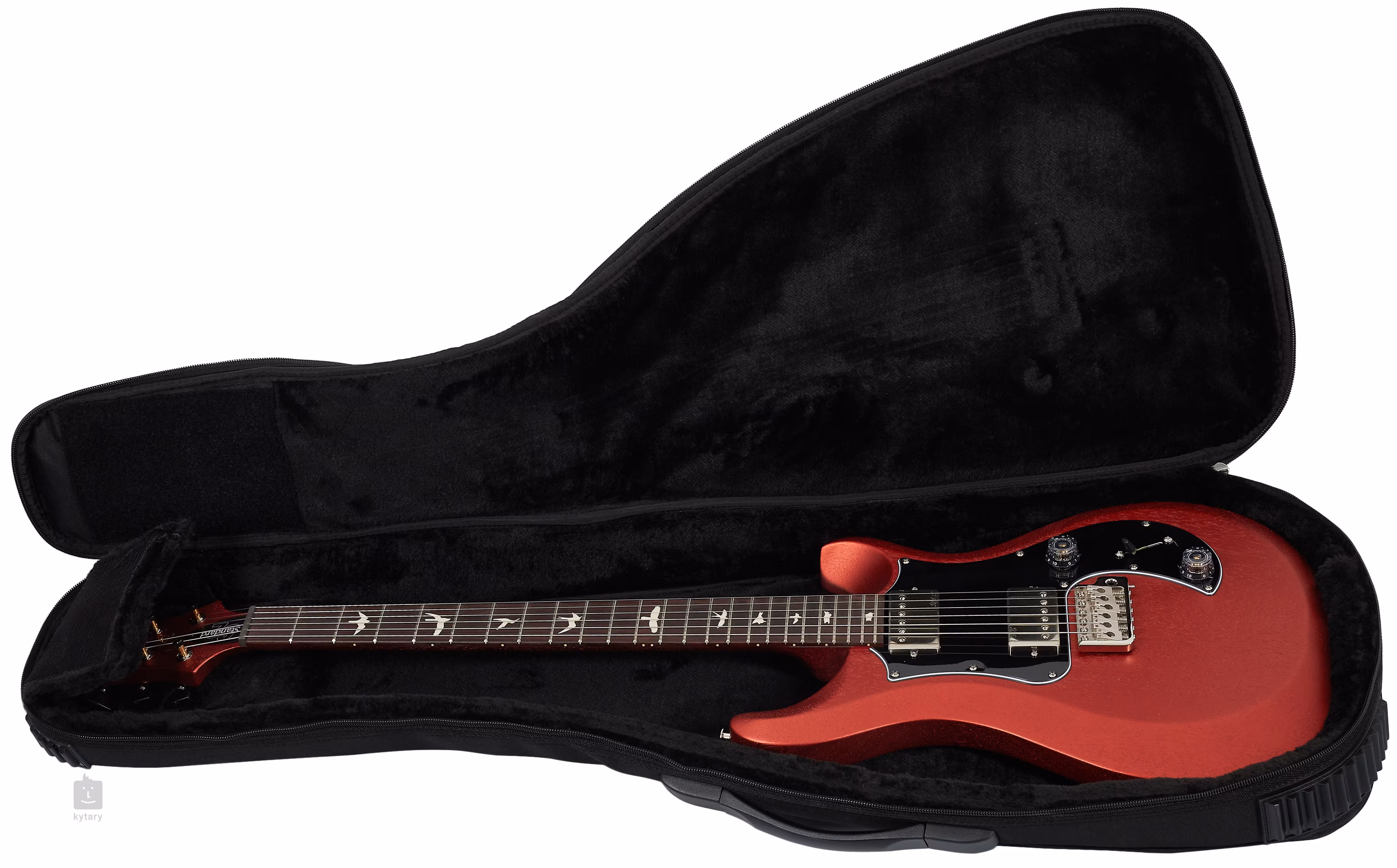 Mahoniowy korpus gitary S2 Standard 24 Satin Red Apple Metallic pokryty jest cienką warstwą satynowego nitrolaku. Palisandrowa podstrunnica z dwudziestoma czterema progami jest przyklejona do mahoniowej szyjki o profilu Pattern Thin. Znaczniki pozycji w postaci sylwetek ptaków ułatwiają orientację na podstrunnicy.