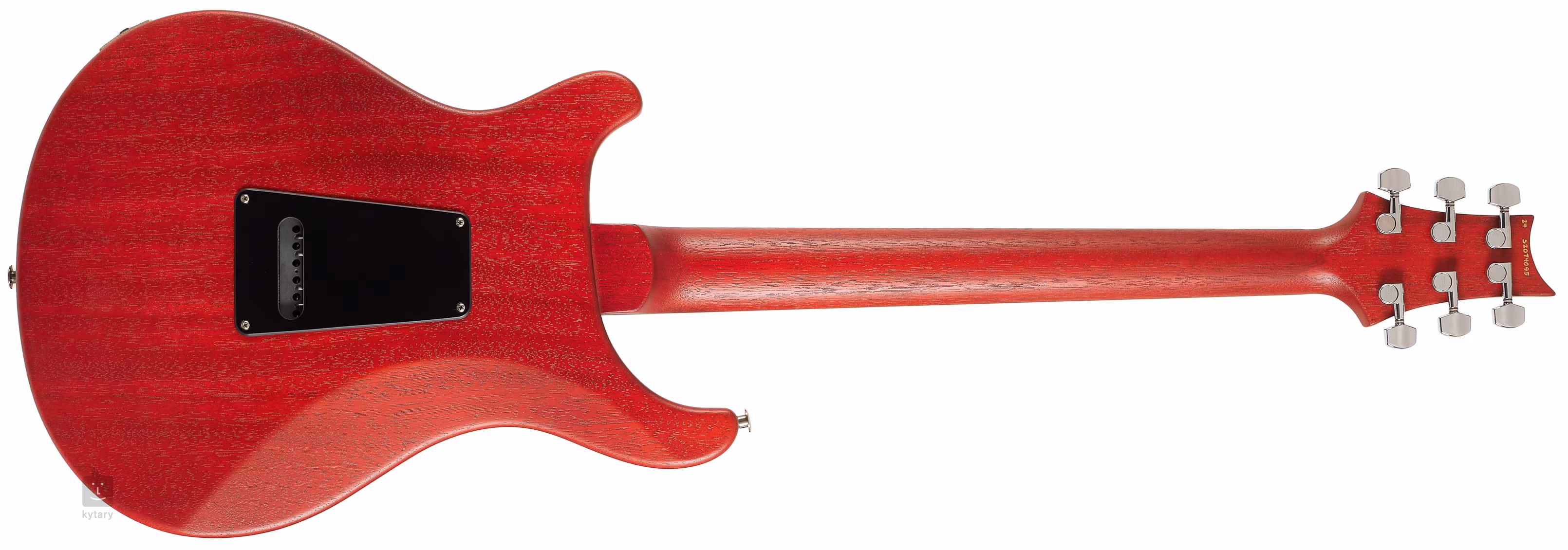 Właściwości mahoniowego korpusu i wykończenia S2 Standard 24 Satin Vintage Cherry Satin zostały podkreślone cienką warstwą satynowego nitrolaku. Palisandrowa podstrunnica z dwudziestoma czterema progami jest przyklejona do mahoniowej szyjki o profilu Pattern Thin. Znaczniki pozycji w postaci sylwetek ptaków ułatwiają orientację na podstrunnicy.
