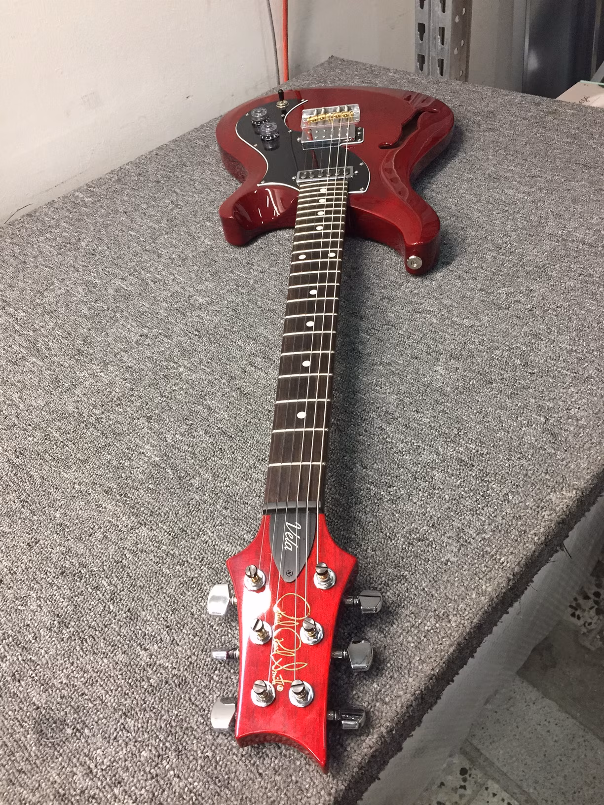 The S2 Vela Semi-Hollow is a vintage-inspired guitar with loads of personality and tonal textures. Its offset body shape is at once elegant and edgy, and the addition of a semi-hollow body and f-hole gives the Vela added attitude and resonance.