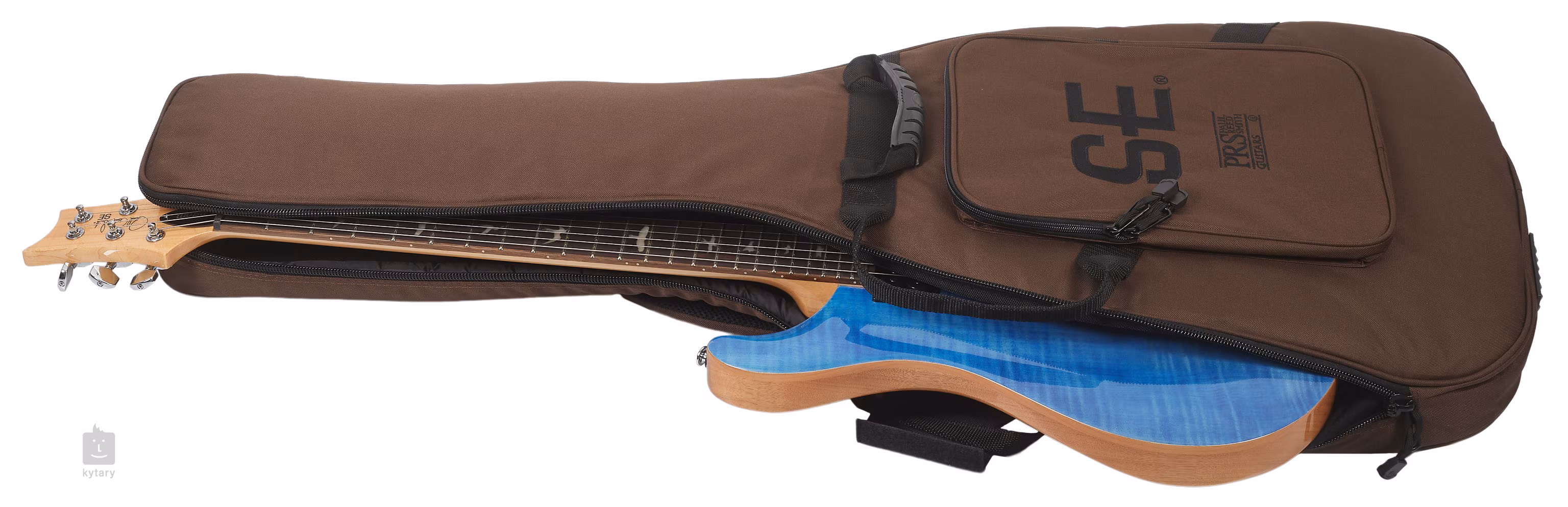 Struny są umieszczone w fabrycznym tremolo, a stabilność strojenia gwarantują wysokiej jakości napędy PRS. Gitara dostarczana jest w pokrowcu.