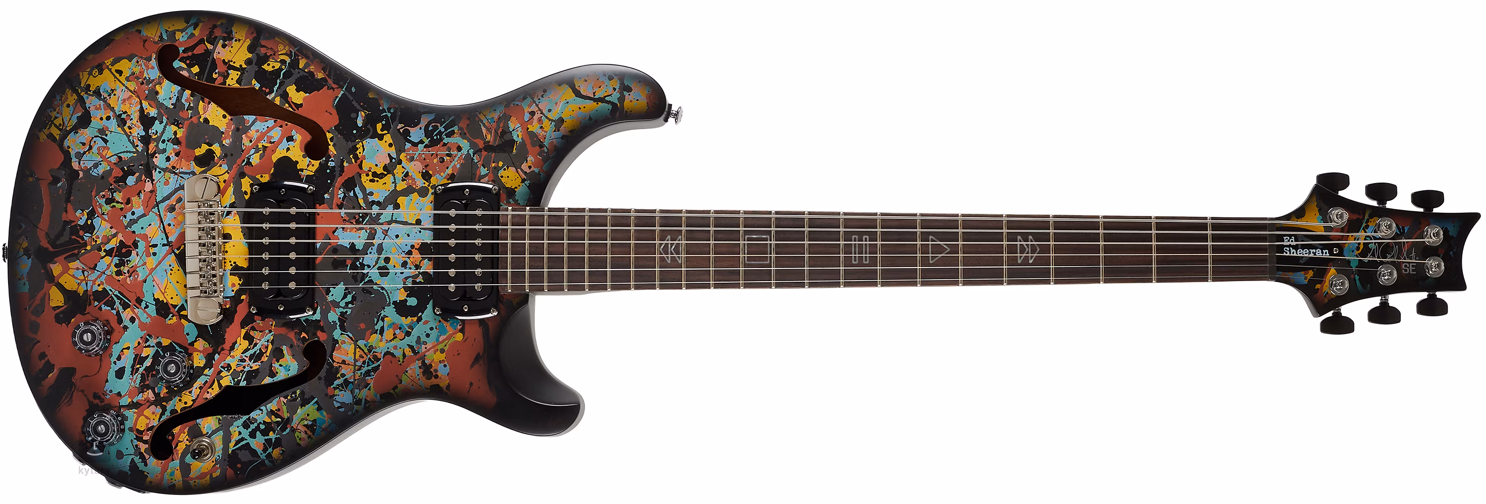 SE Ed Sheeran Cosmic Splash Hollowbody Baritone Limited Edition to gitara elektryczna z dłuższym baritonowym menzurem, nad którą pracował Ed Sheeran pod marką PRS. W korpusie tej limitowanej edycji (dostępnej na całym świecie w ilości 1000 sztuk) łączą się dwie pasje Eda Sheerana – komponowanie muzyki i malarstwo.