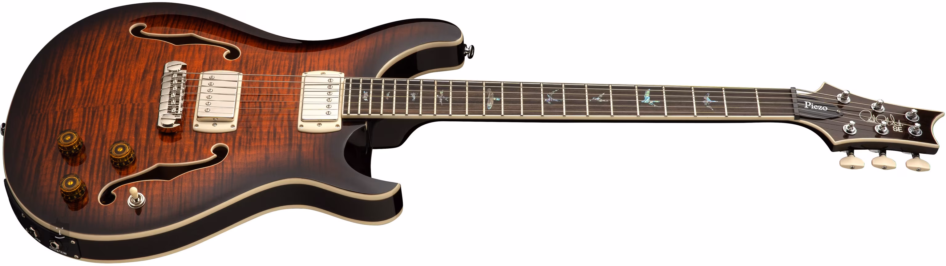 Gitara elektryczna SE Hollowbody II Piezo Orange Tiger Smokeburst 2026 amerykańskiej marki PRS z bardziej przystępnej cenowo serii SE to niezwykle wszechstronny instrument, który w jednym korpusie oferuje brzmienie zarówno gitary akustycznej, jak i elektrycznej.