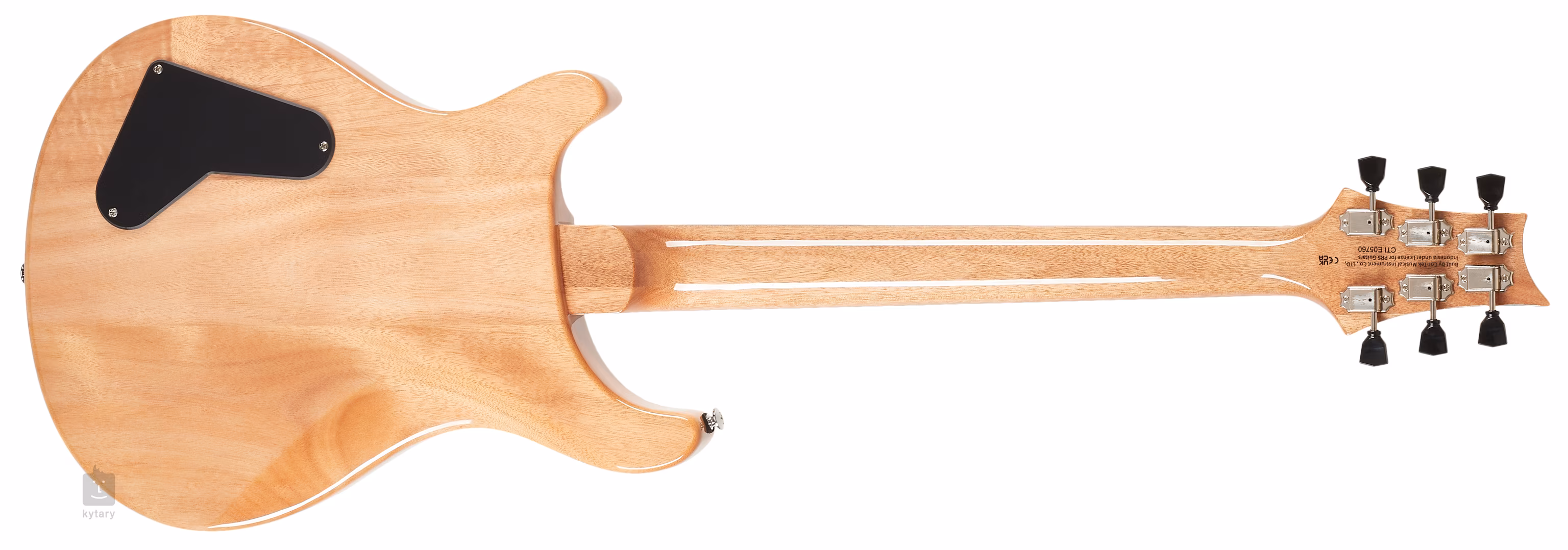 Już na pierwszy rzut oka gitara przykuwa uwagę solidnym, ergonomicznie ukształtowanym mahoniowym korpusem z typowym dla PRS podwójnym cutawayem, rzeźbionym klonowym topem i efektownym fornirem z figuralnego klonu. Palisandrowa szyjka o profilu Wide Fat przyklejona jest do mahoniowej szyjki wyposażonej w dwadzieścia dwa progi i ozdobionej tradycyjnymi dla PRS znacznikami pozycji z sylwetkami ptaków.